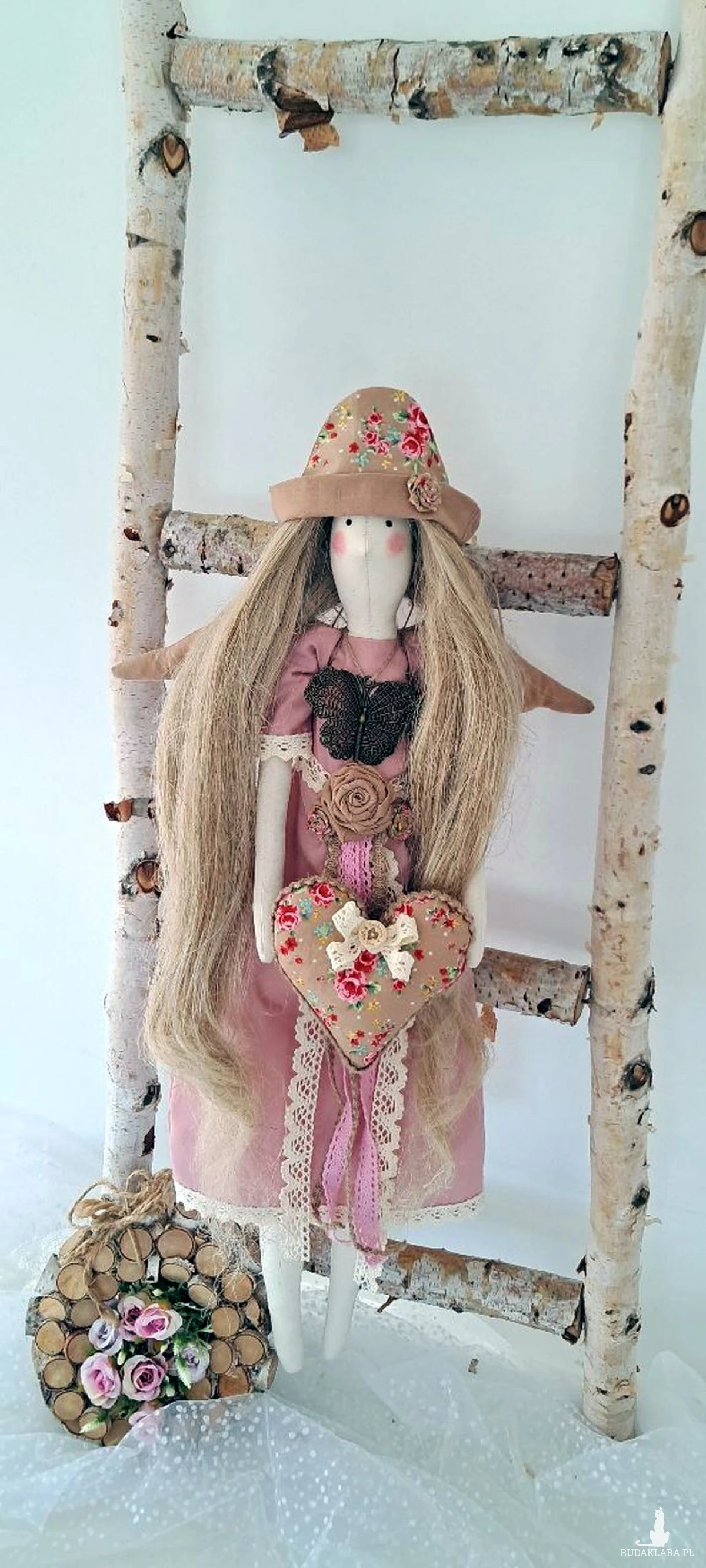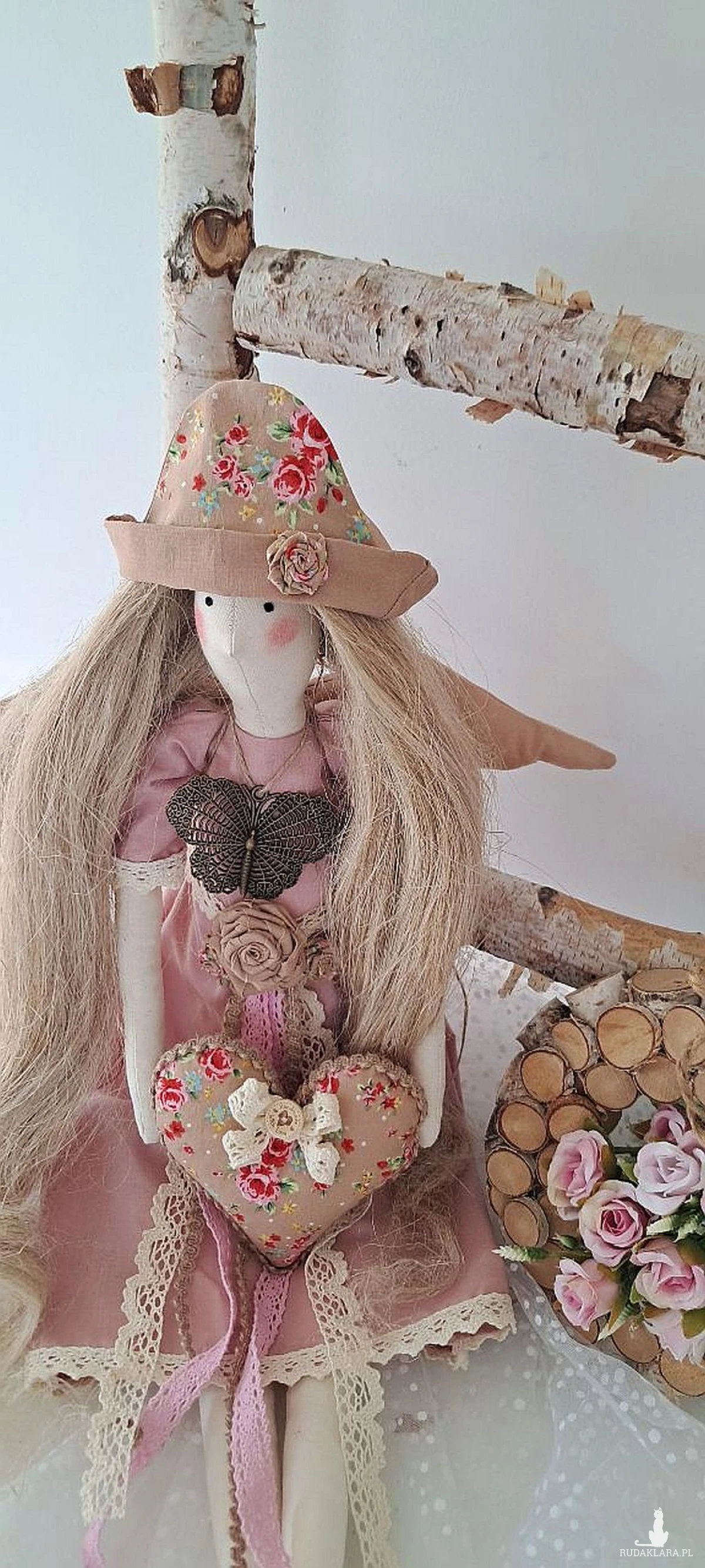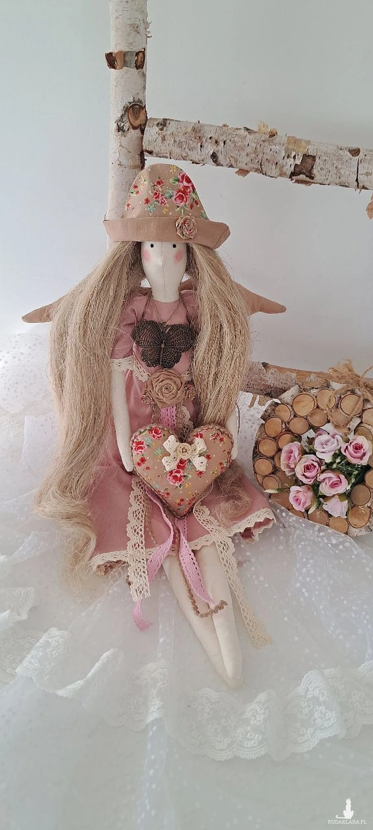 materiałowe również wykonane przeze mnie. W rączce trzyma serduszko