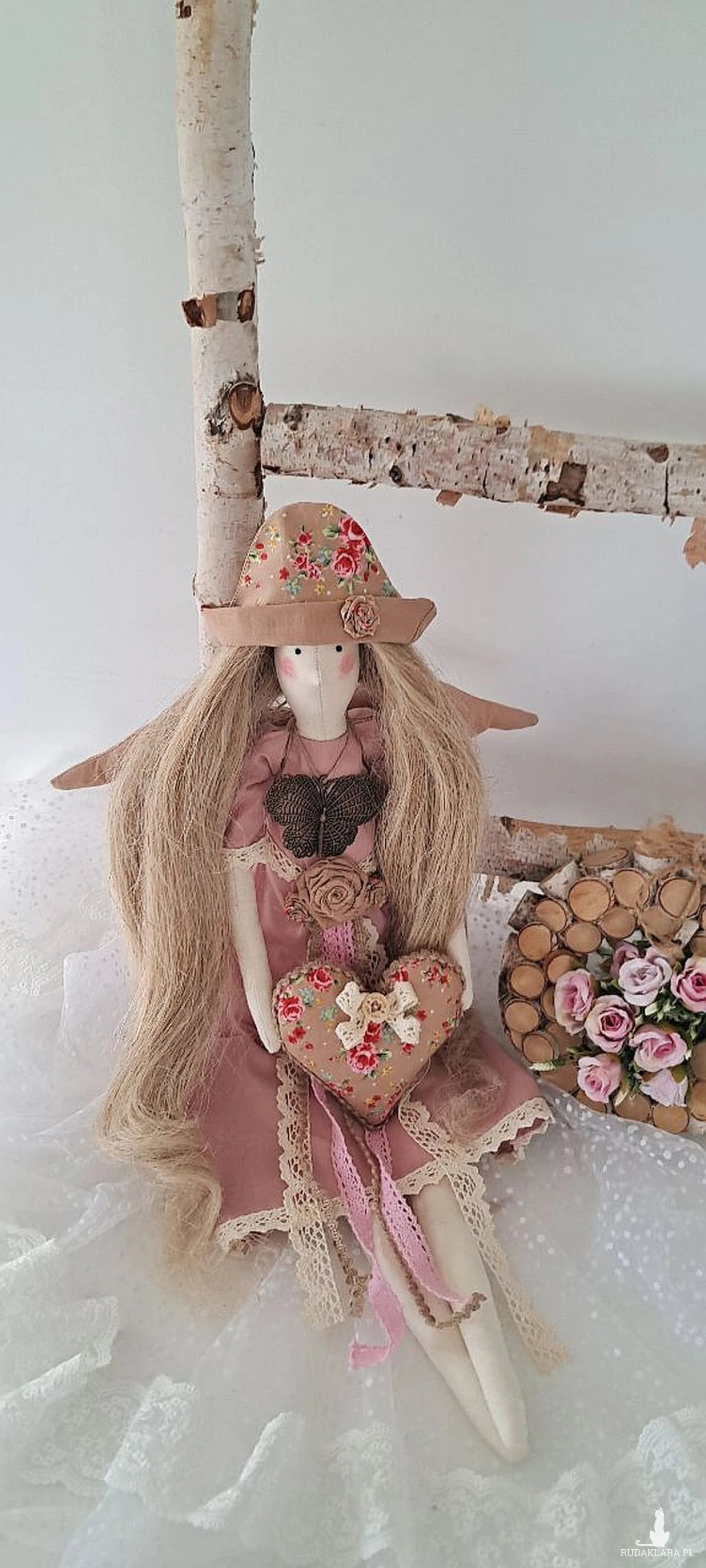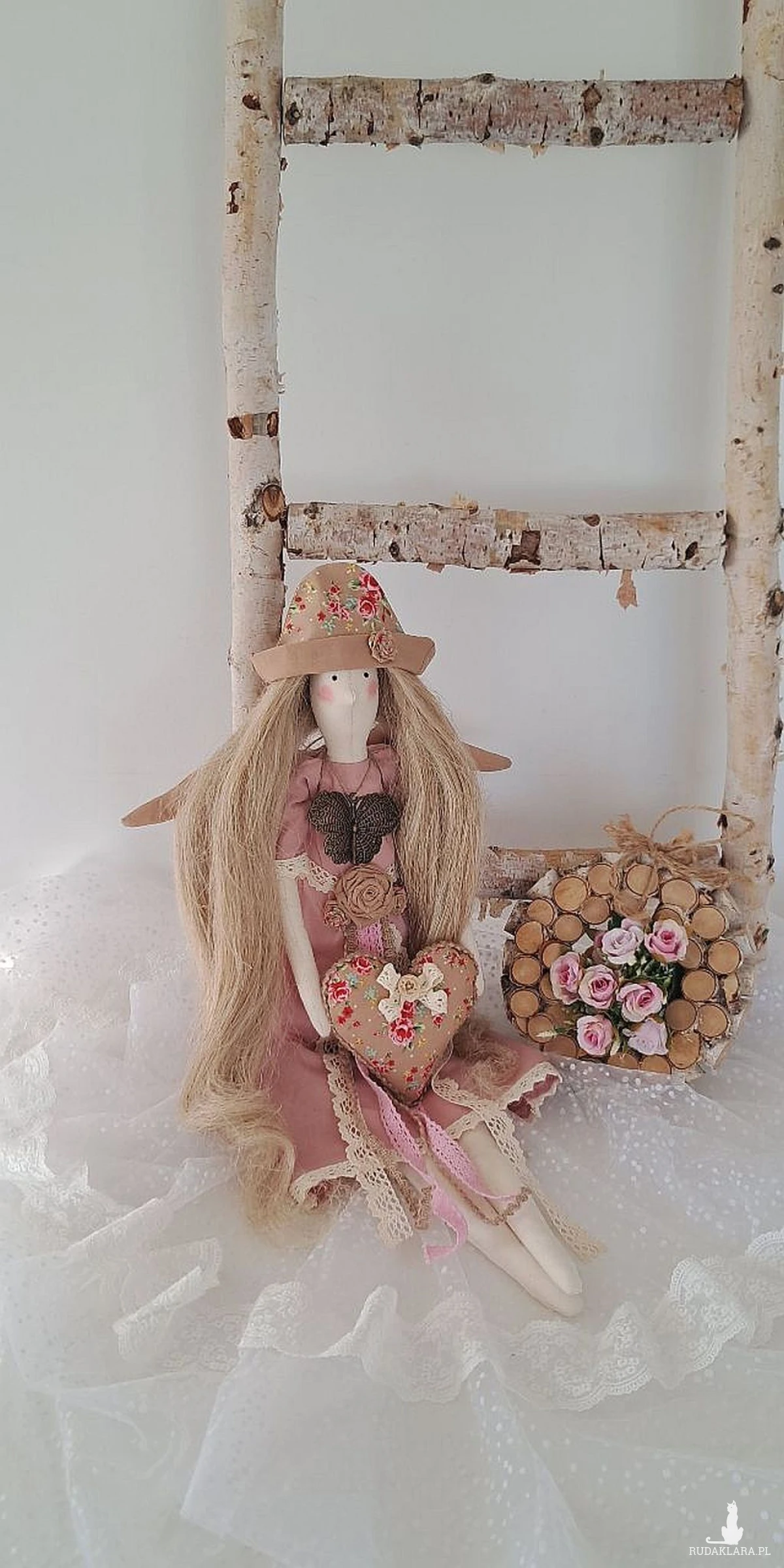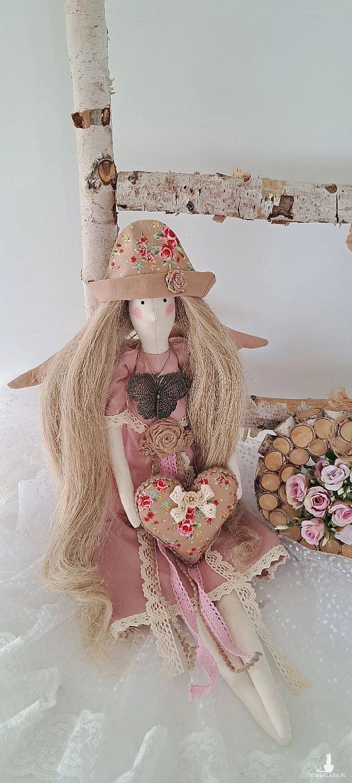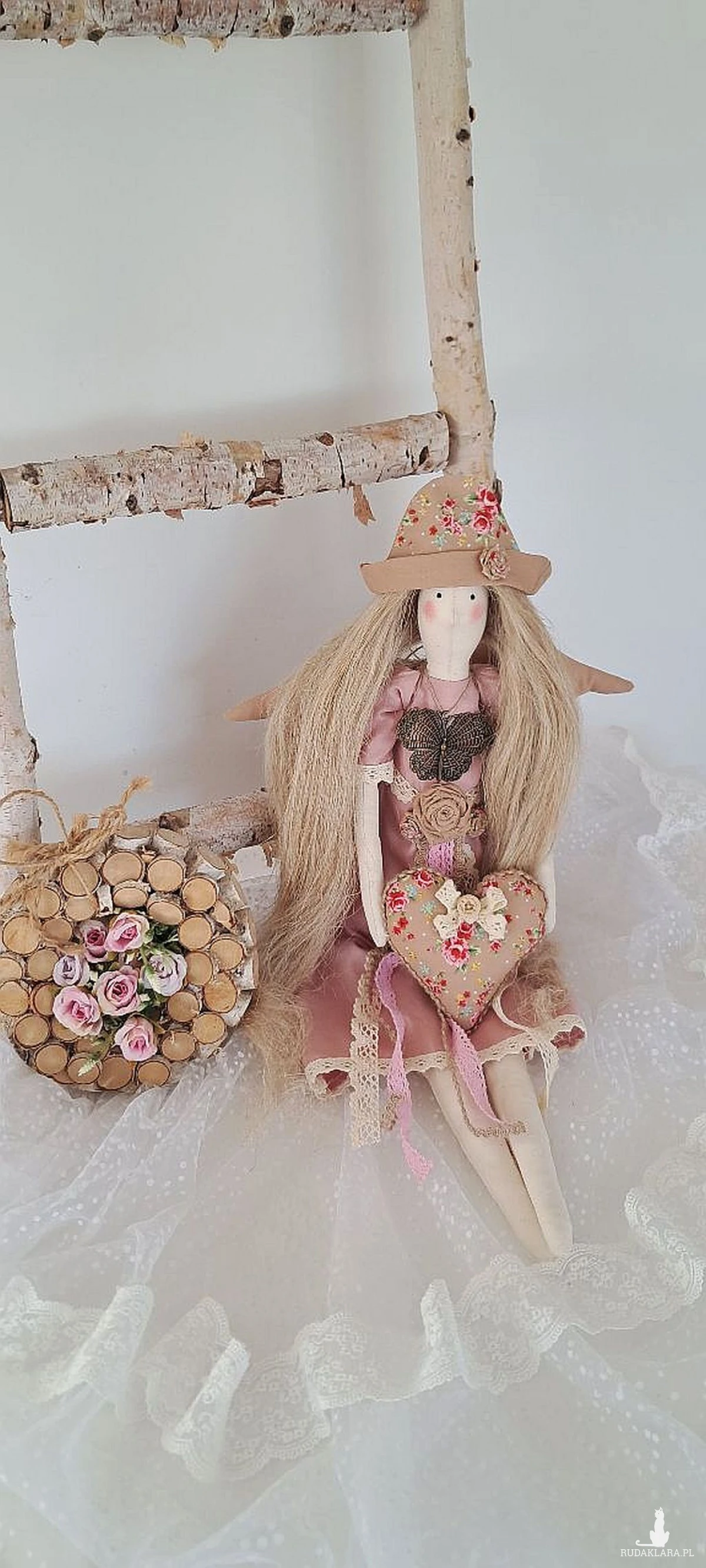 materiałowe również wykonane przeze mnie. W rączce trzyma serduszko