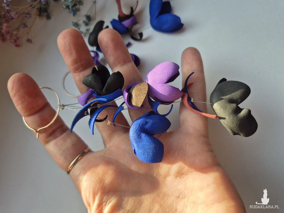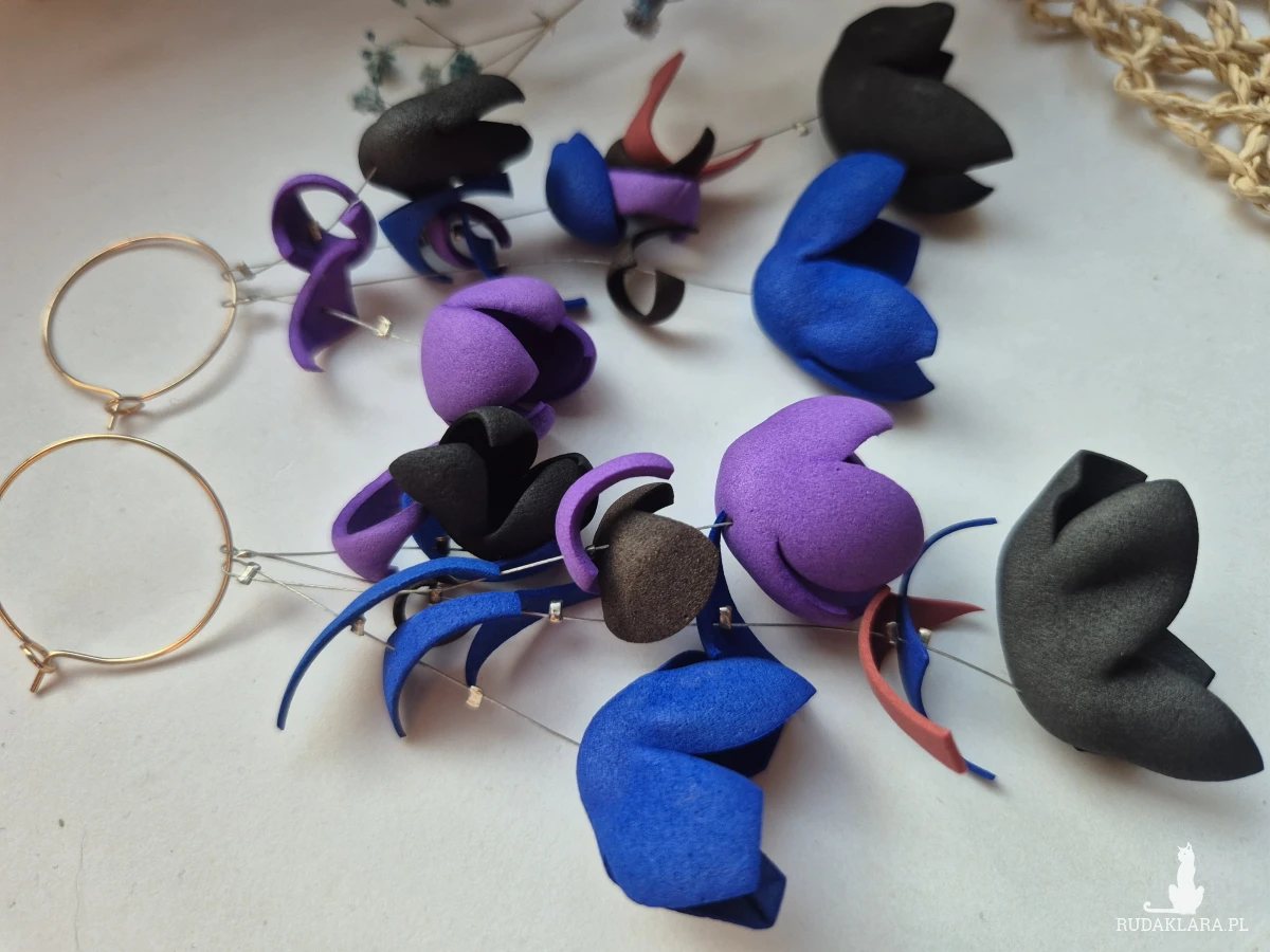 Kolczyki w granatach kwiaty bardzo spektakularne niezwykle widoczne z serii tej biżuterii która zmienia twój strój jednym detalem polecam rękodzieło