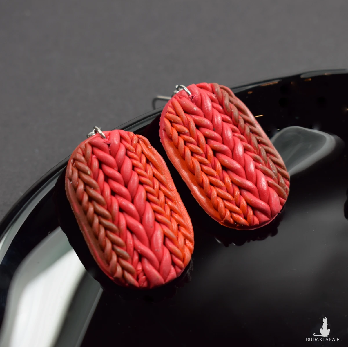 Oryginalne kolczyki w odcieniach czerwieni i bordo. Ich centralny