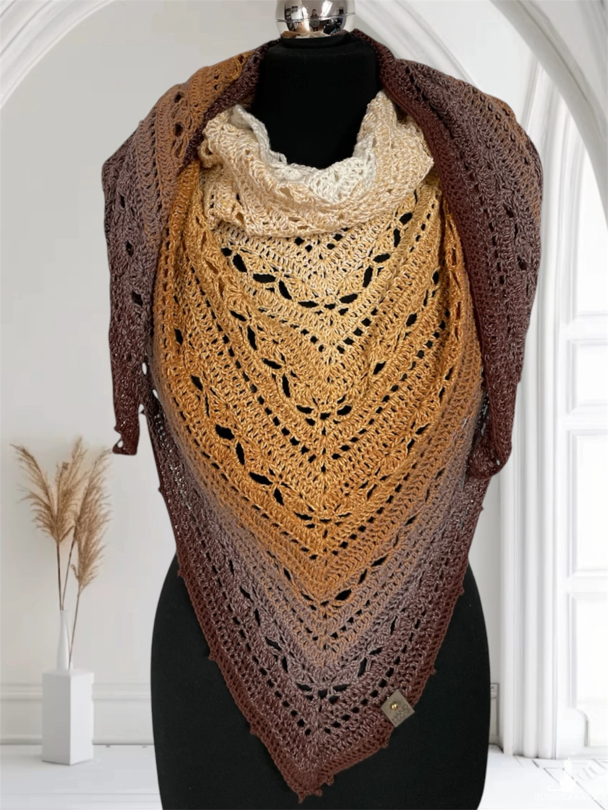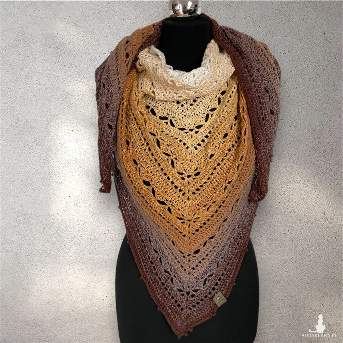 Piękna cieniowana chusta zrobiona ręcznie na szydełku.