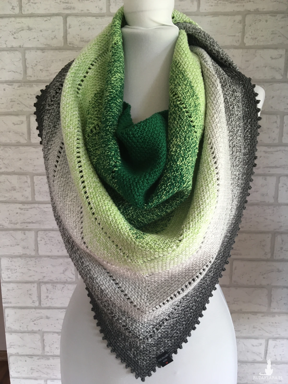 Piękna cieniowana chusta mech wykonana ręcznie na szydełku.