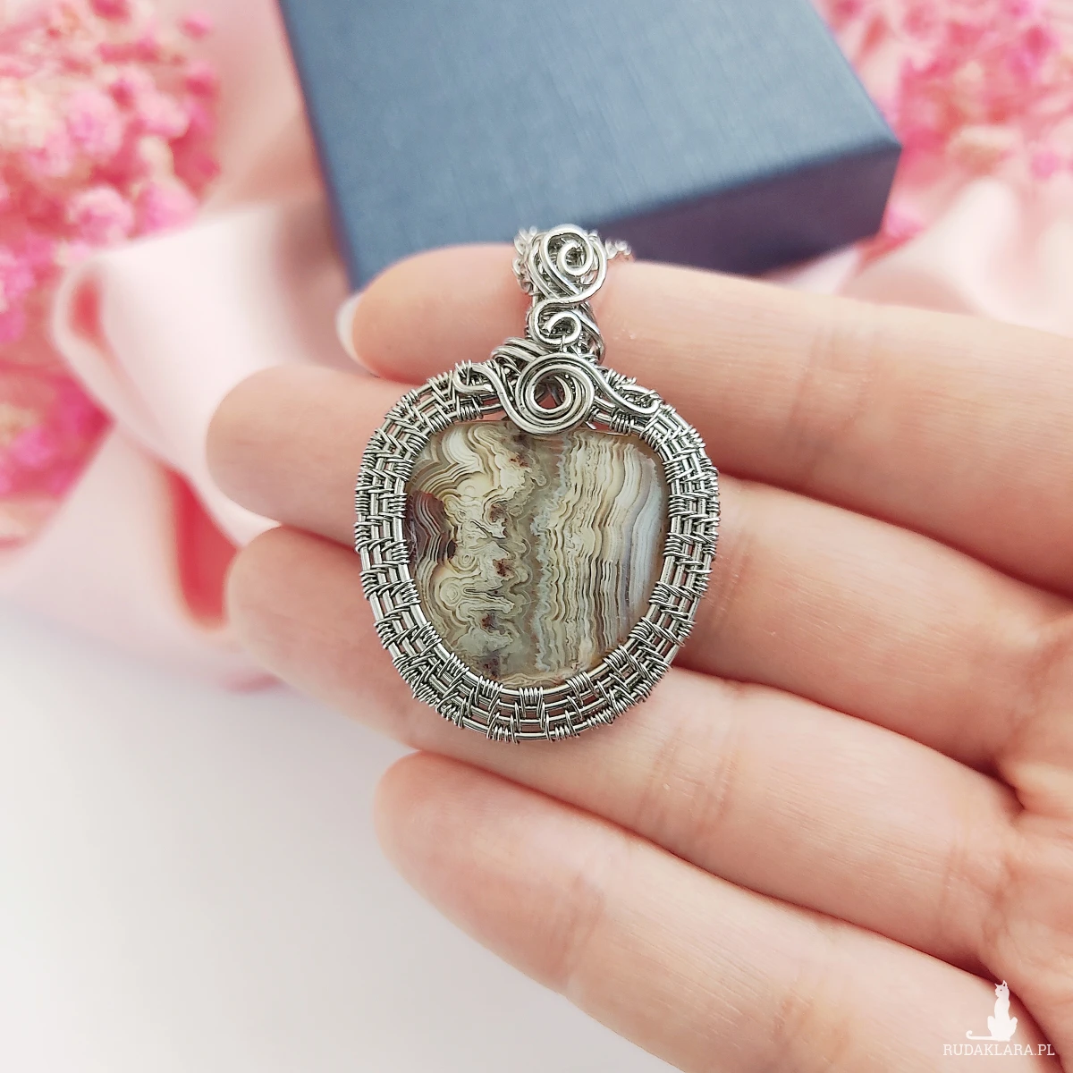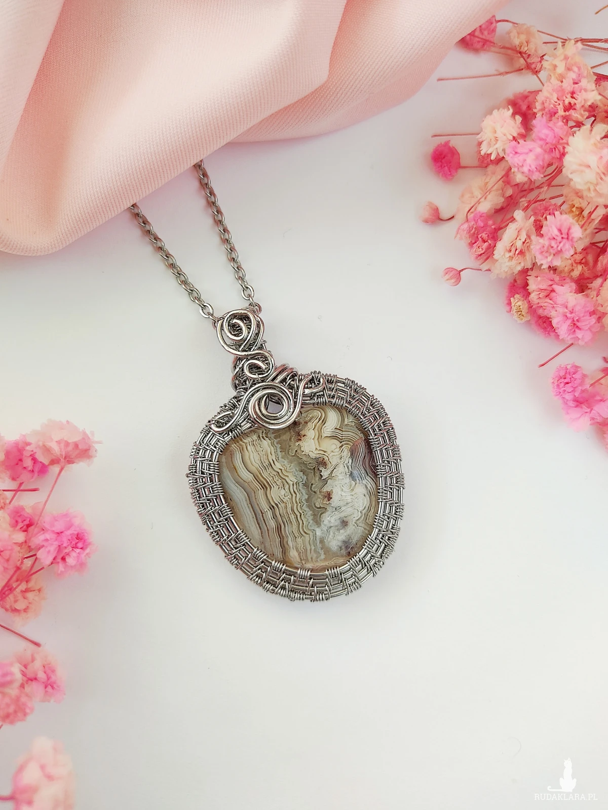 Naszyjnik z agatem crazy lace wykonany metodą wire wrapping ze stali chirurgicznej to niezwykły dodatek, który łączy w sobie kunszt rękodzieła, trwałość materiału i magię naturalnego kamienia. Ten wyjątkowy naszyjnik przyciąga uwagę oryginalnym wzorem agatu crazy lace – minerału znanego z niezwykłych, falistych linii i kontrastowych barw. Każdy egzemplarz wyróżnia się unikalnym rysunkiem, dzięki czemu biżuteria jest jedyna w swoim rodzaju i niepowtarzalna.