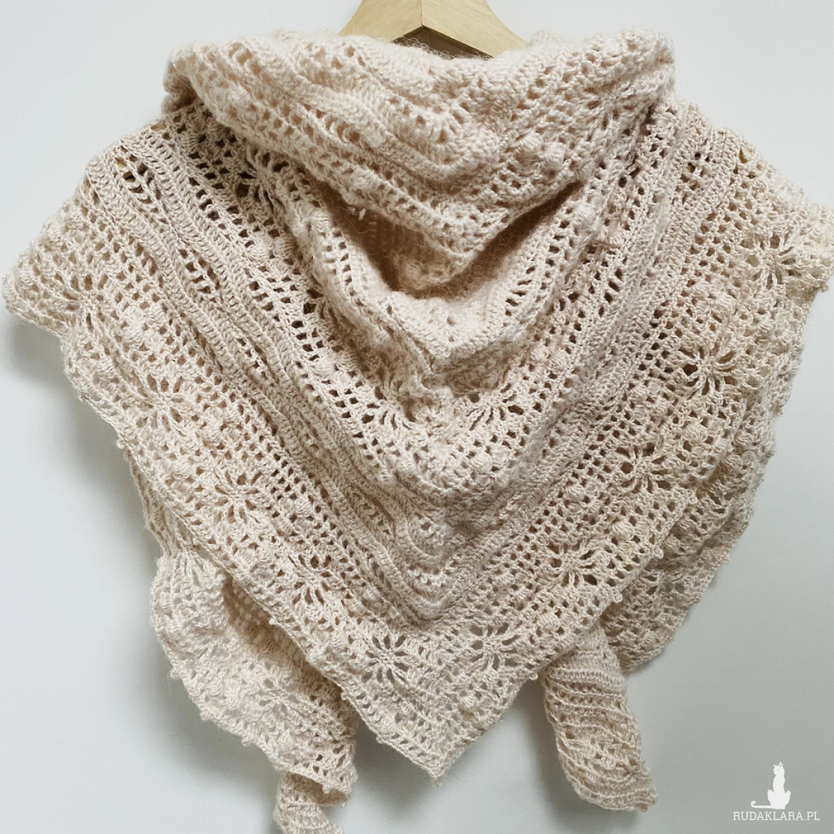 Chustę wykonałam na szydełku z włóczki Papatya Angora, która zachwyca swoją miękkością i delikatnością. Połączenie 20% wełny merynosów znanej z doskonałych właściwości termoizolacyjnych, z 80% akrylu sprawia, że jest to idealny wybór na chłodniejsze dni oraz stylowy element garderoby. Certyfikat OEKO-TEX® Standard 100 potwierdza, że jest bezpieczna dla a zdrowia materiały użyte do jej produkcji są wolne od szkodliwych substancji chemicznych.