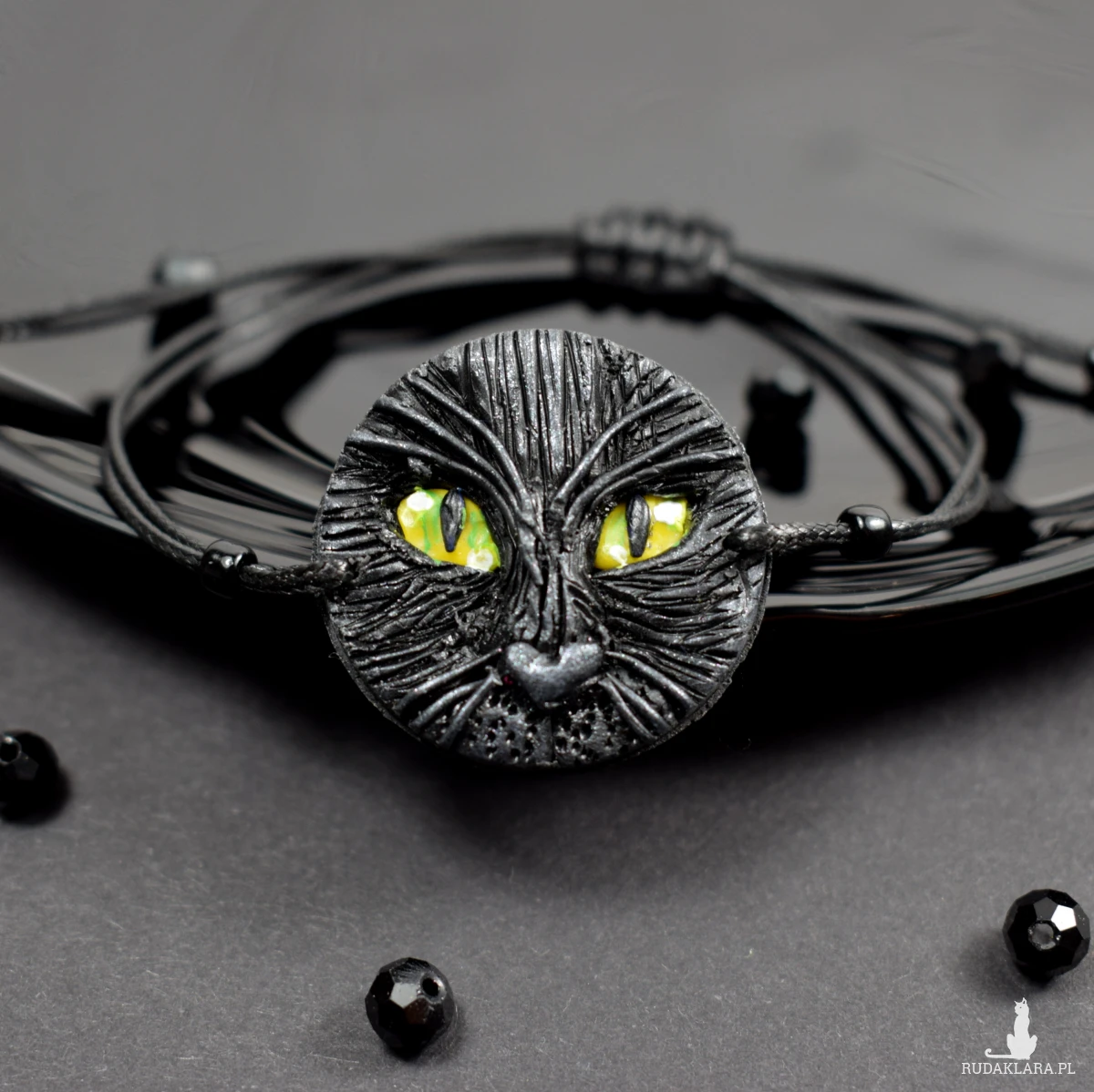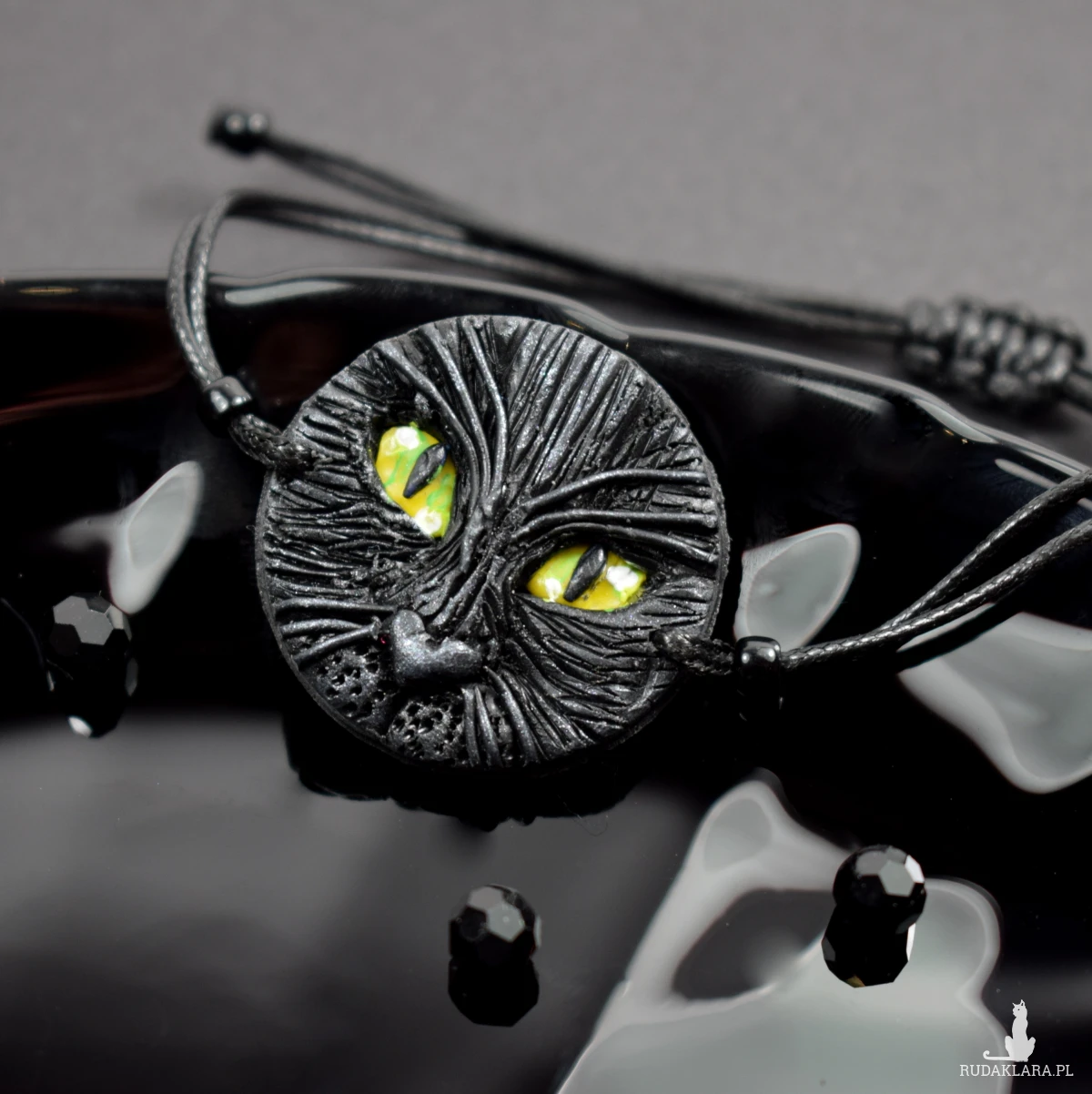 Bransoletka "czarny kot" - biżuteria z charakterem, regulowana.