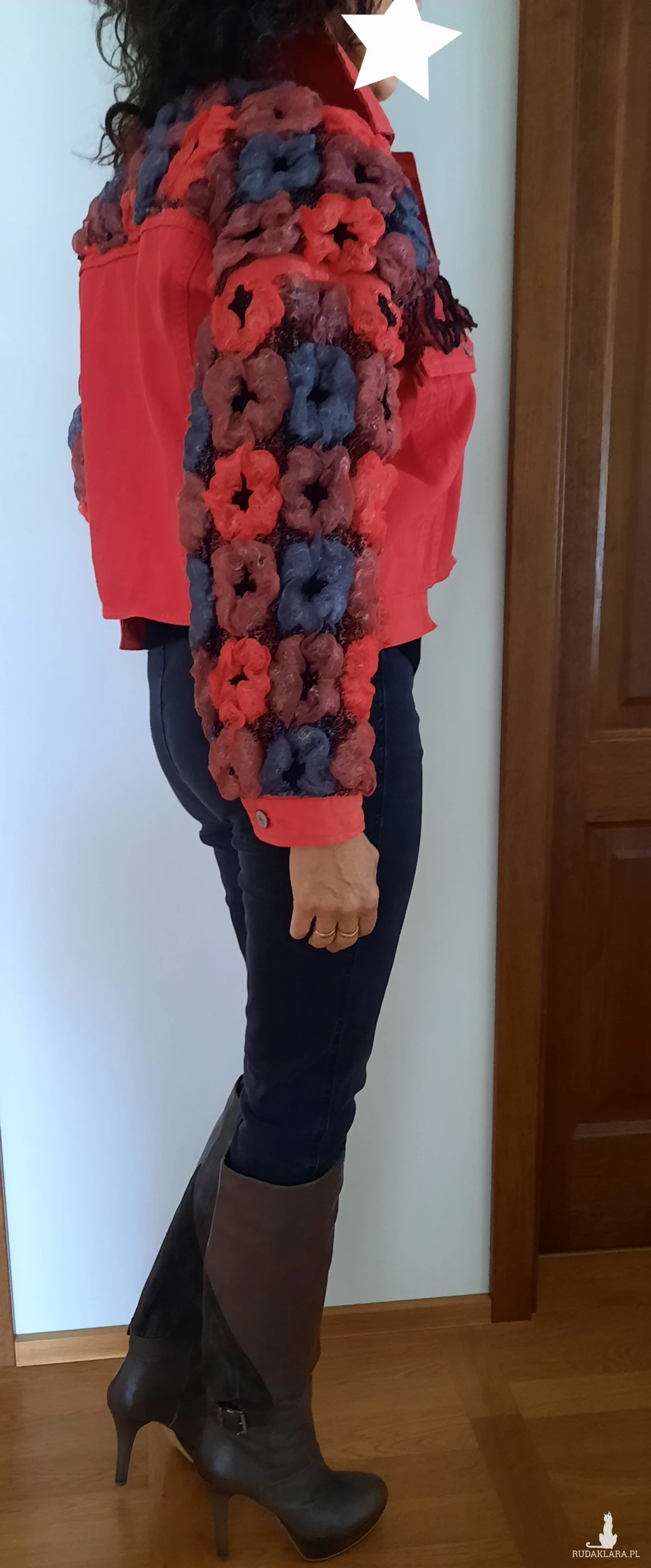 Sprzedam kolejne moje dzieło z serii nic nie może być nudne!!! Rękawy z naszytym misternie szalem w niesamowite kwiaty.. Wszystko 100 % mój projekt,jedyna! . Piękny dobrany kolor, na każdą okazję!!!. Bardzo polecam! POLECAM jedyna taka dla Ciebie 🙂 DAJĘ RZECZOM DRUGIE ŻYCIE