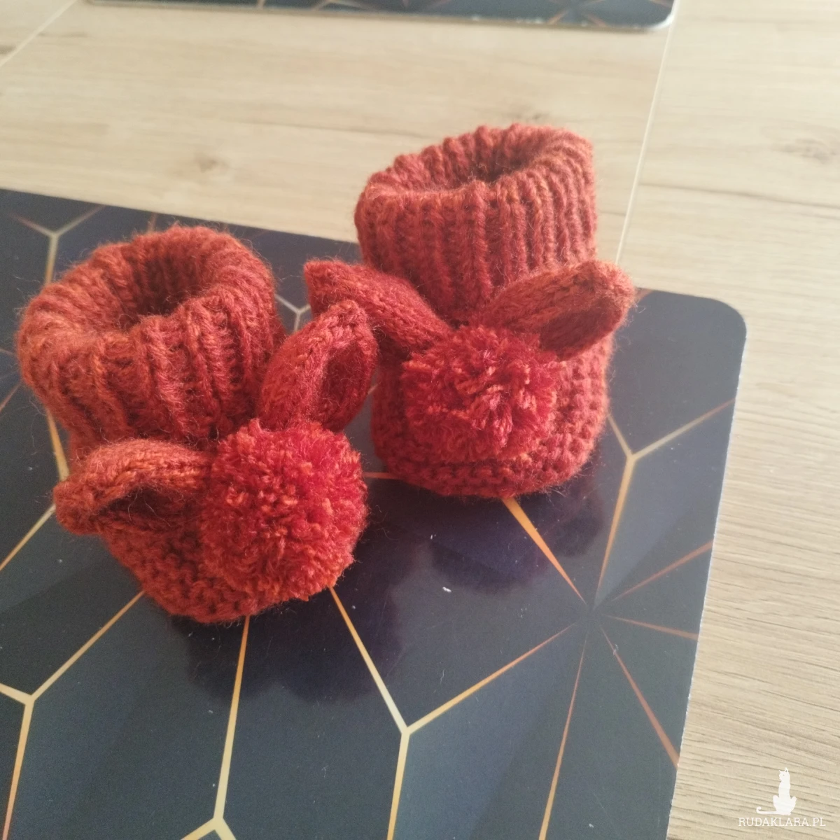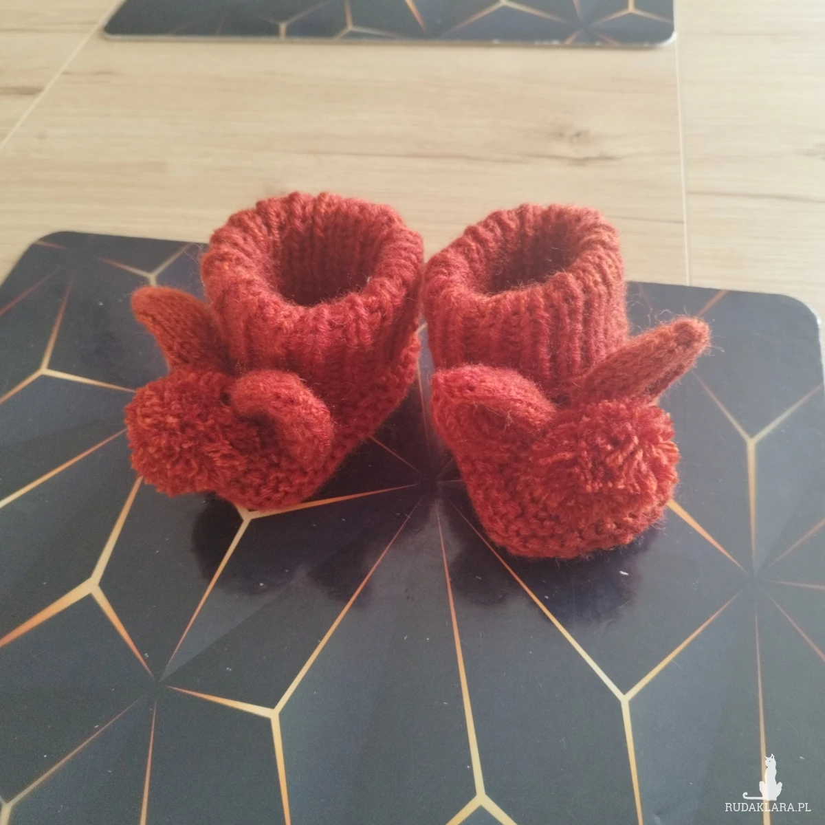 Buciki niemowlęce zrobione na drutach. Kolor kasztanowy. Rozmiar 0-3mies