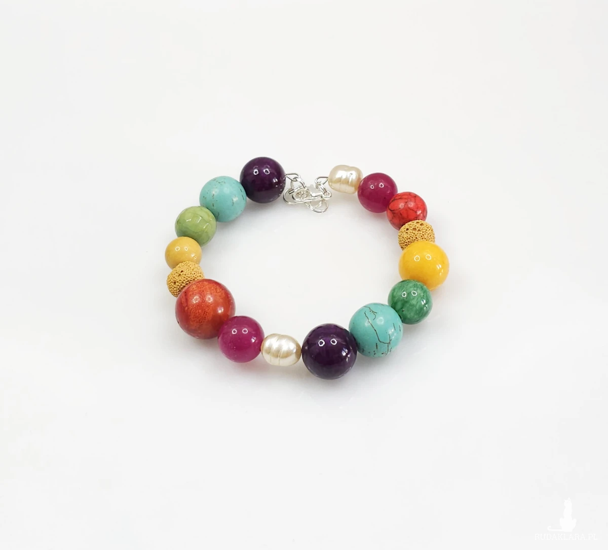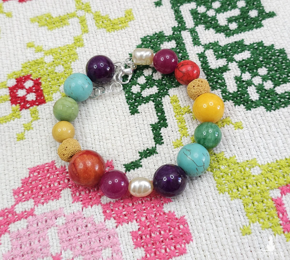 Materiały: perła słodkowodna, jadeit, howlit, lawa, turkus, koral, marmur, agat (8-14 mm).