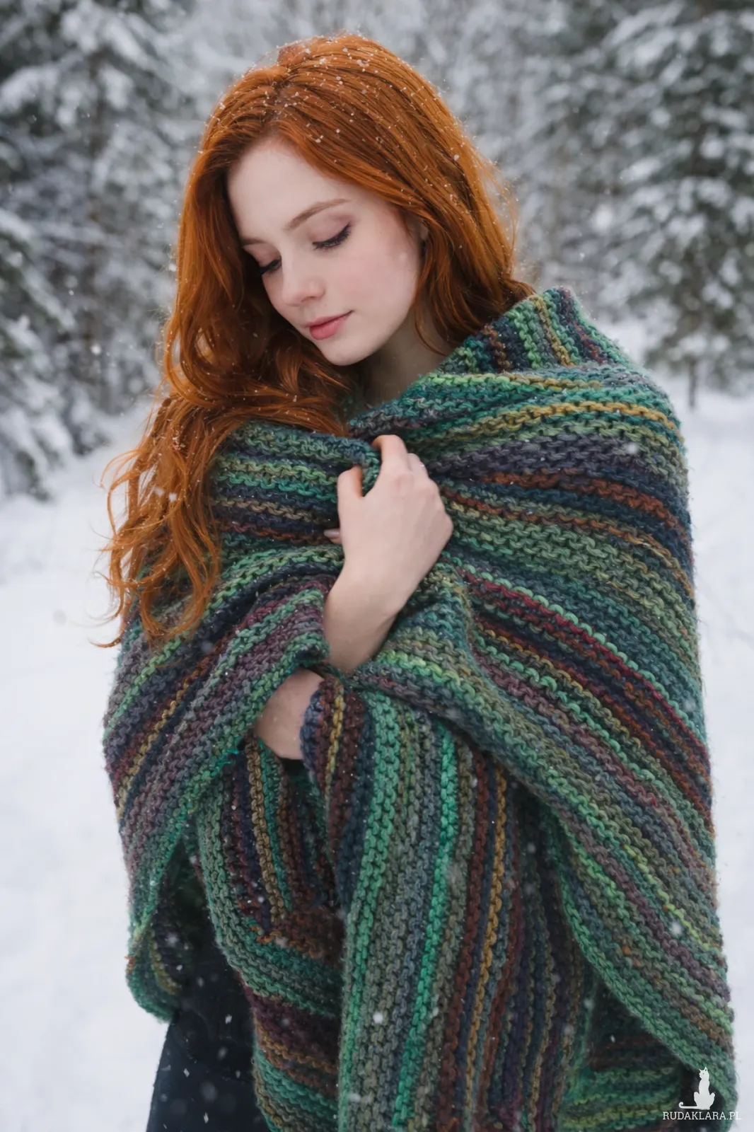 Duża chusta asymetrycznie zrobiona strzałka otuli, ogrzeje w zimowe dni.
