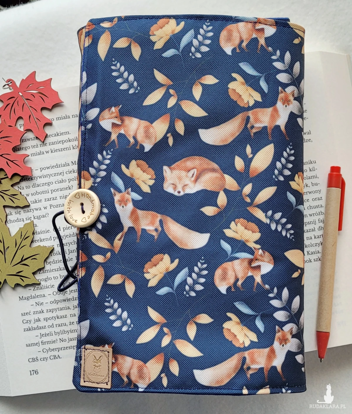 - zapięcie na gumkę, dzięki czemu książka się nie otwiera, a okładka dostosowuje się do grubości tomu;