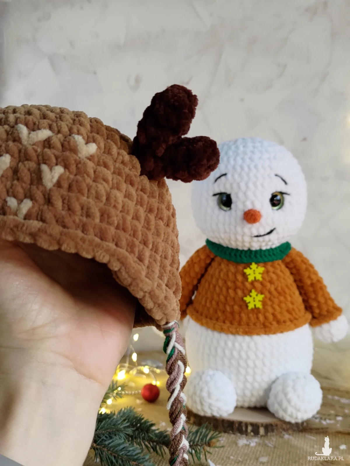 Świąteczny bałwanek pluszowy w czapeczkę renifera to jest bardzo niesamowita maskotka czyli dekoracja na Święta Bożego Narodzenia oraz Nowy rok!