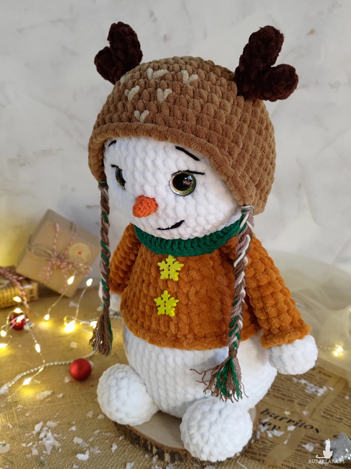 • Bałwanek wykonany z miękkiej pluszowej włóczki i jest bardzo przyjemny i miękki w dotyku.