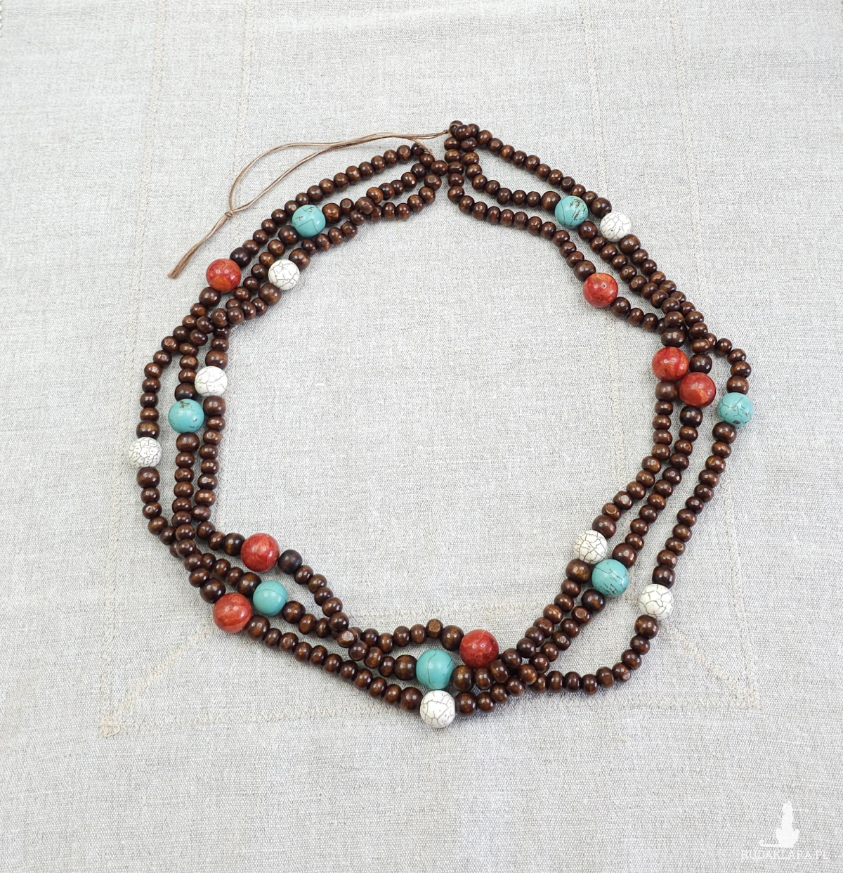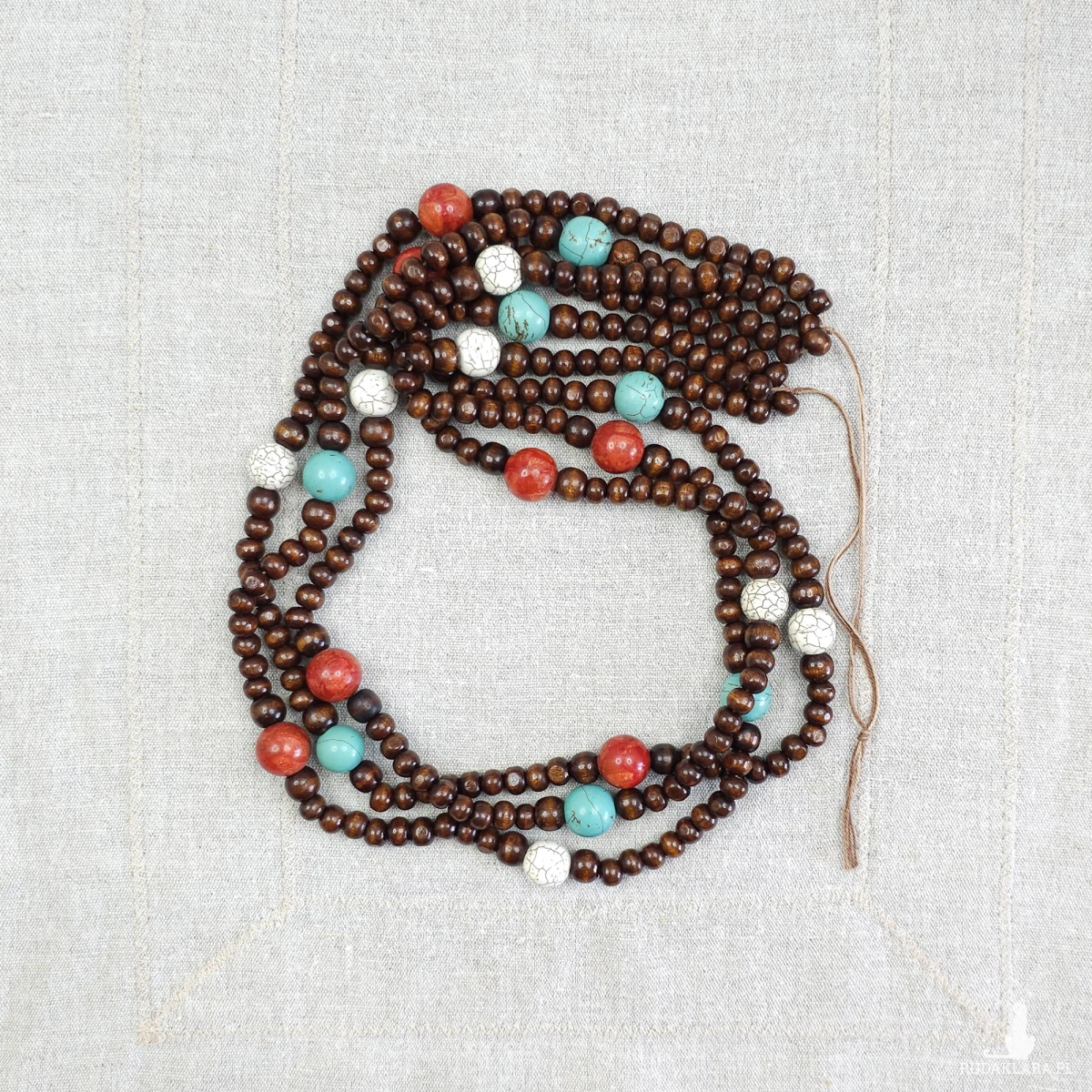 Materiały: drewno, koral, howlit, turkus (8-14 mm).