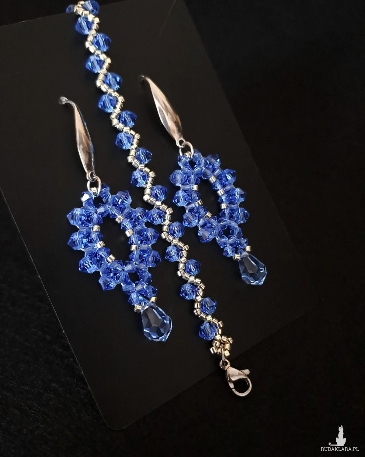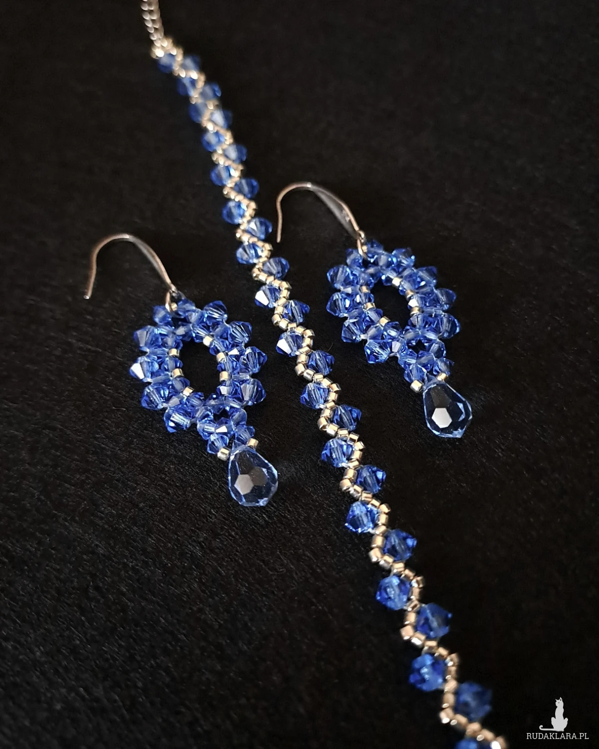 Materiały: kryształki i łezki Preciosa, koraliki Miyuki, stal nierdzewna (hipoalergiczna)