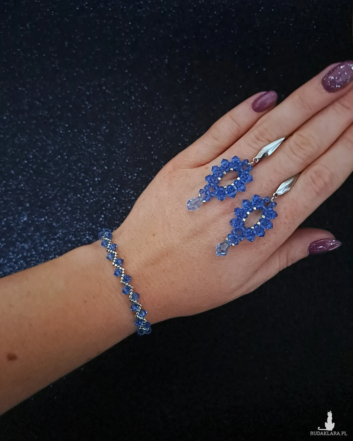 Komplet Biżuterii „Sapphire Clarity” - Bransoletka i Kolczyki z Koralików i Kryształków
