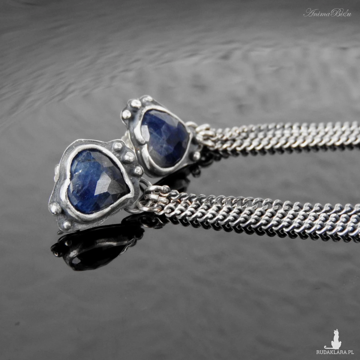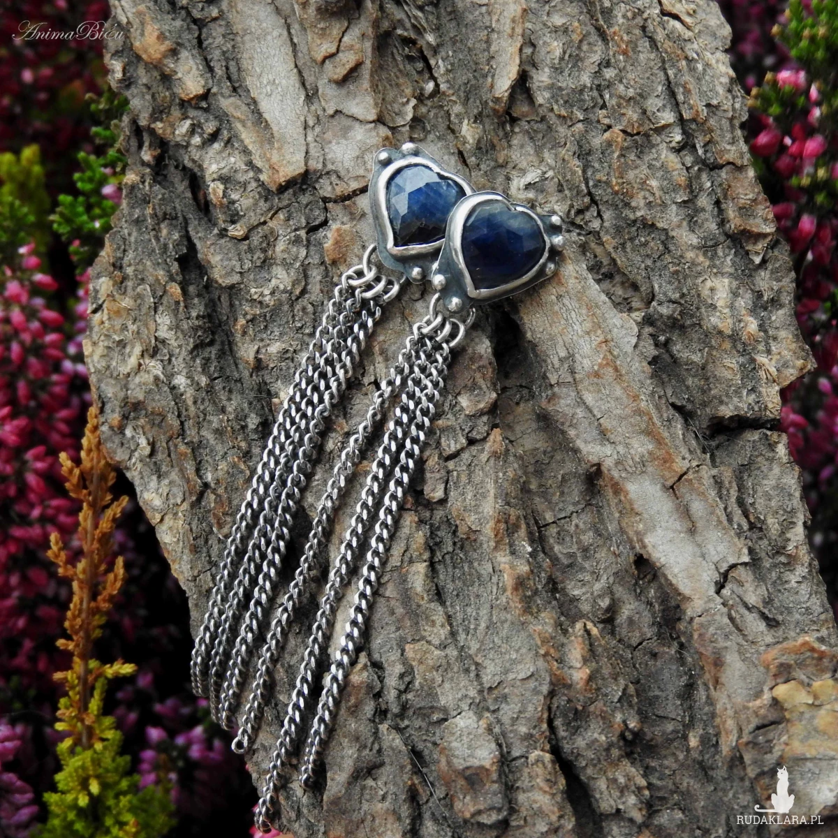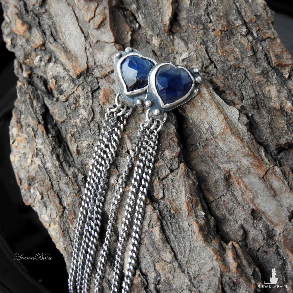 Kolczyki srebrne z szafirami. Wykonane od podstaw ręcznie