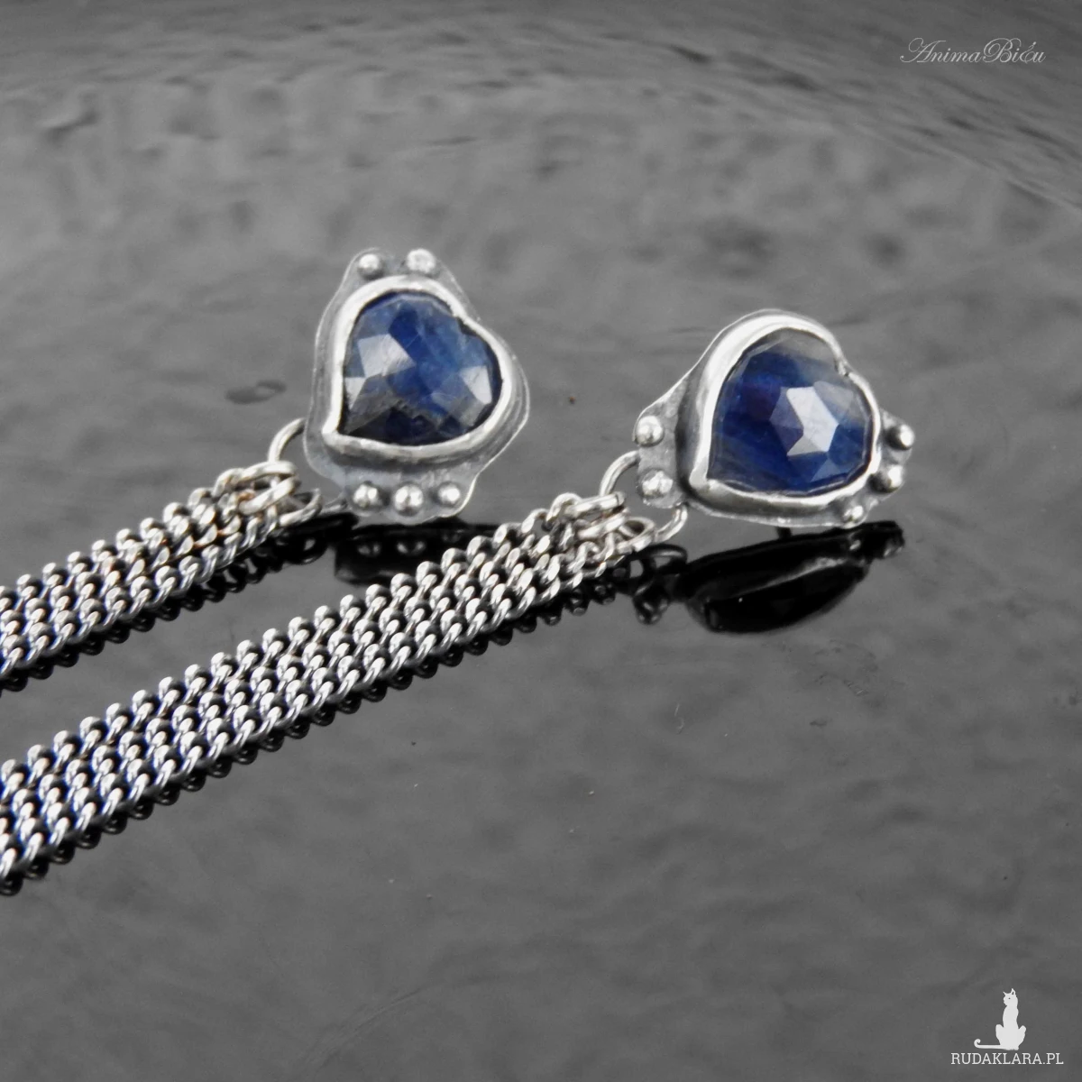 niebieskie szafiry w kształcie serduszka. Przy kamieniach umieściłam kilka