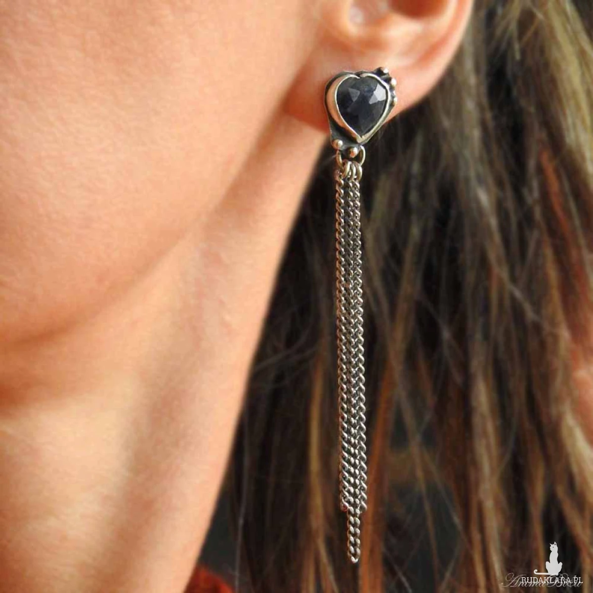 kolczyki typu wkrętki powstały ze srebra próby 925 i 999. Sercem kolczyków są
