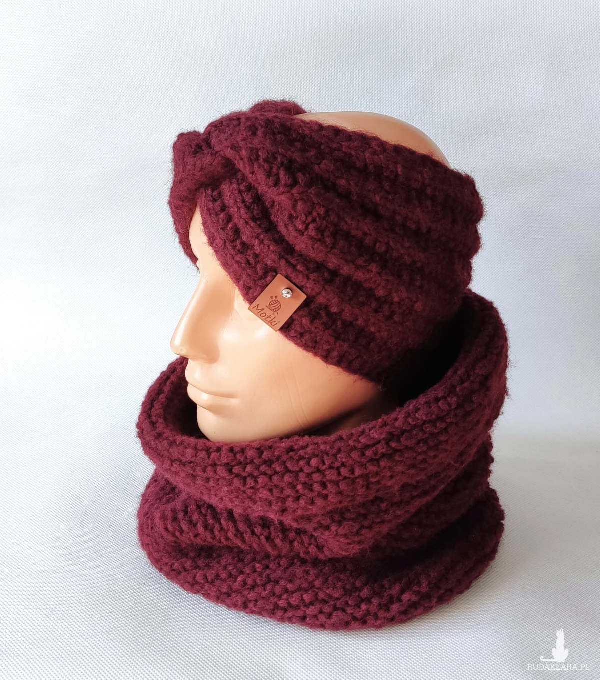 Dzianinowe akcesoria ręcznie wykonane na drutach.