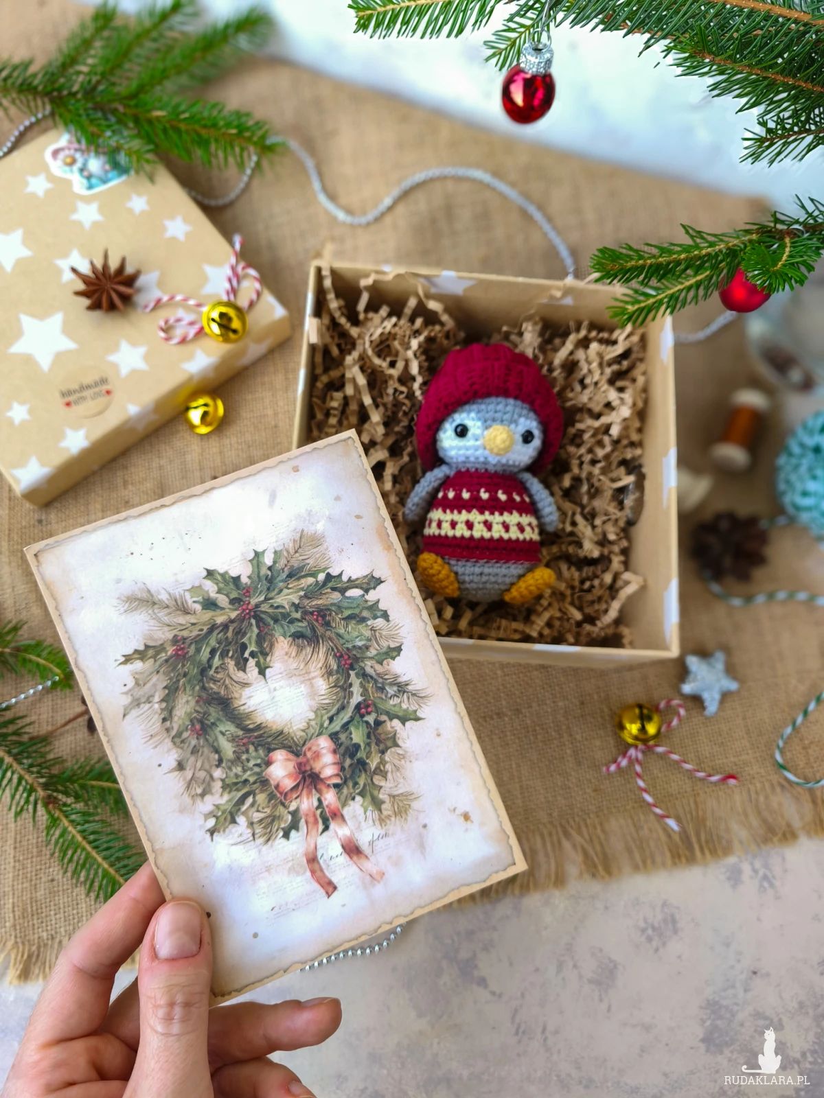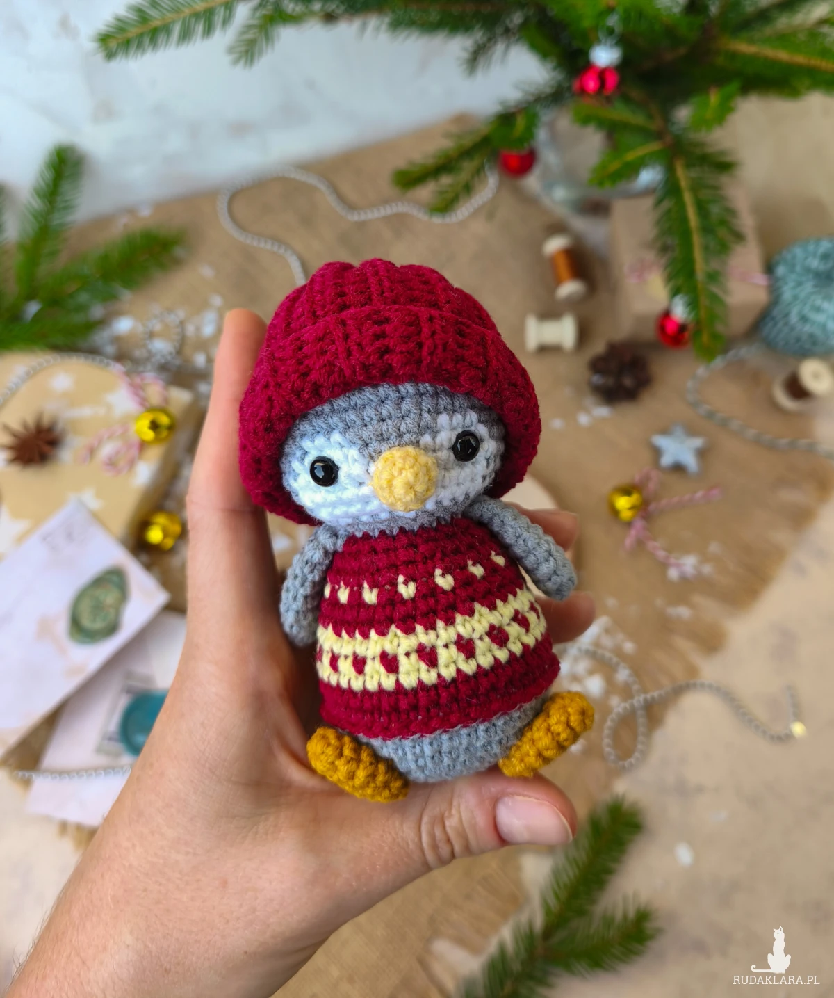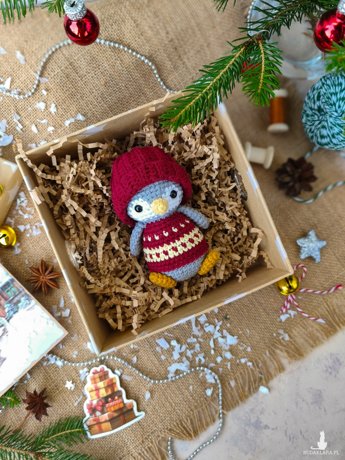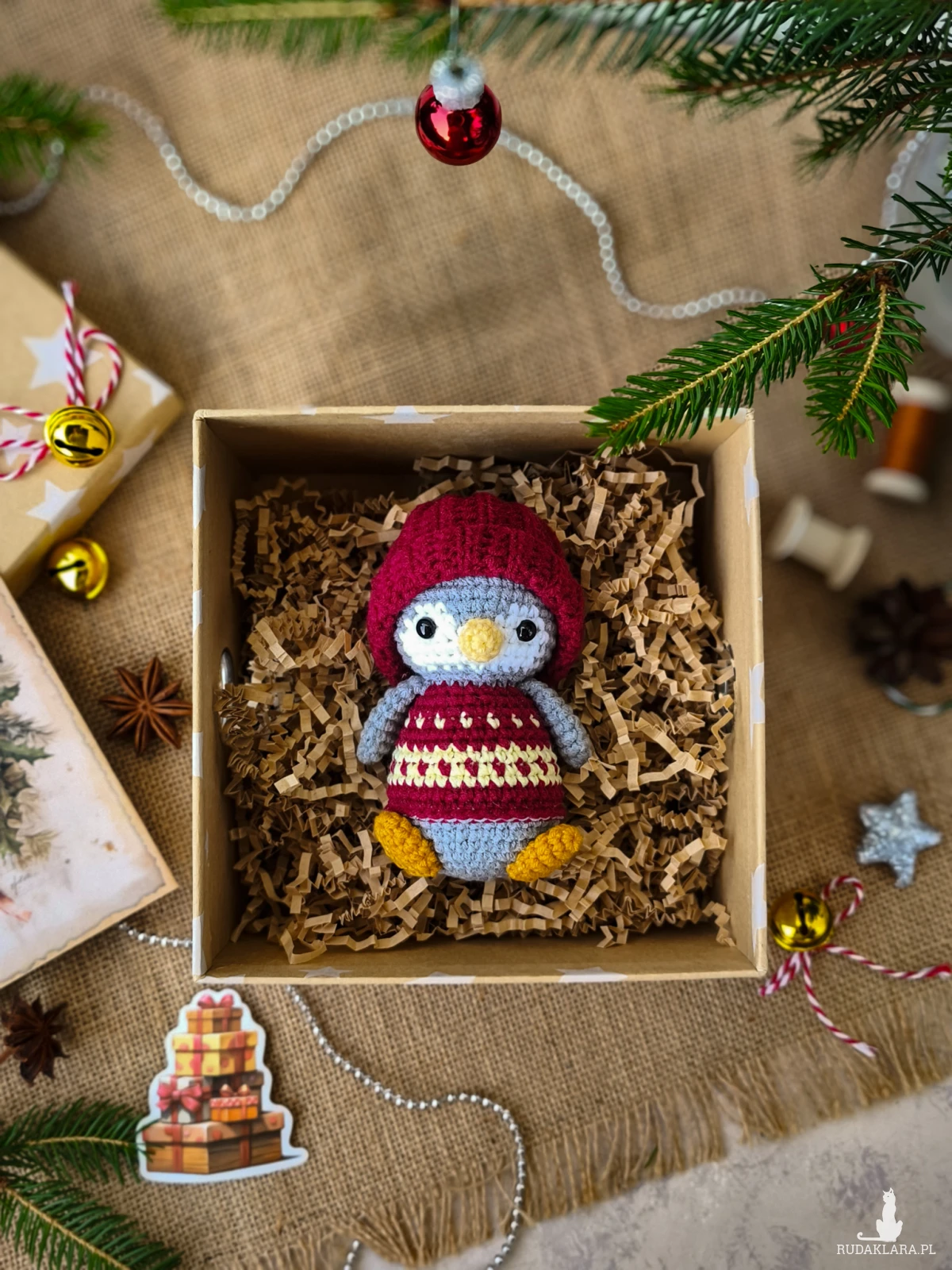 Mały zabawny pingwinek będzie uroczym upominkiem na Święta Bożego Narodzenia lub przytulnym prezentem dla maluszków na wiele różnych okazji.