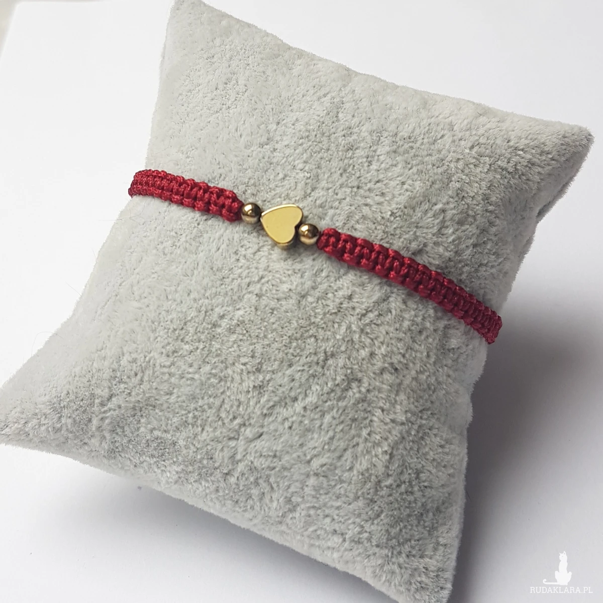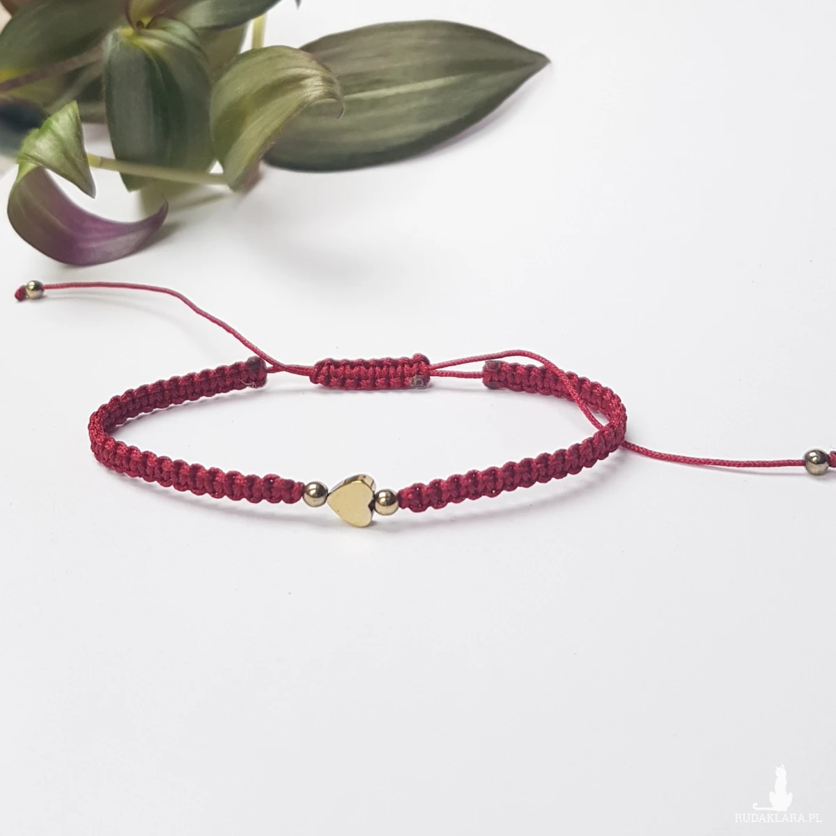 Bransoletka Bordowa z serduszkiem i kuleczkami z hematytu. Duża, na