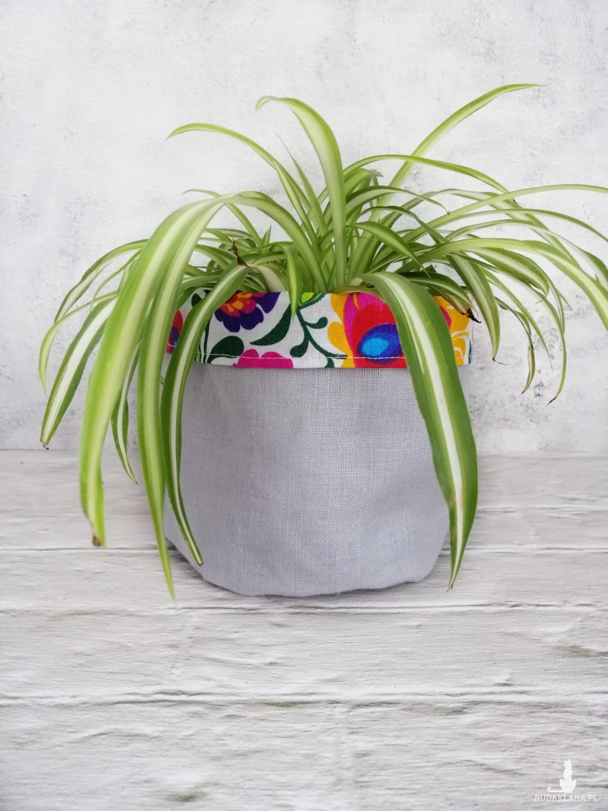 Worek,osłonka na nie atrakcyjna doniczkę wykonana z tkaniny bawełnianej