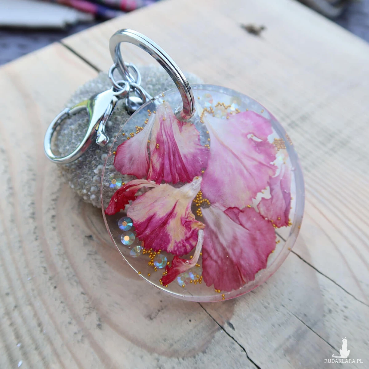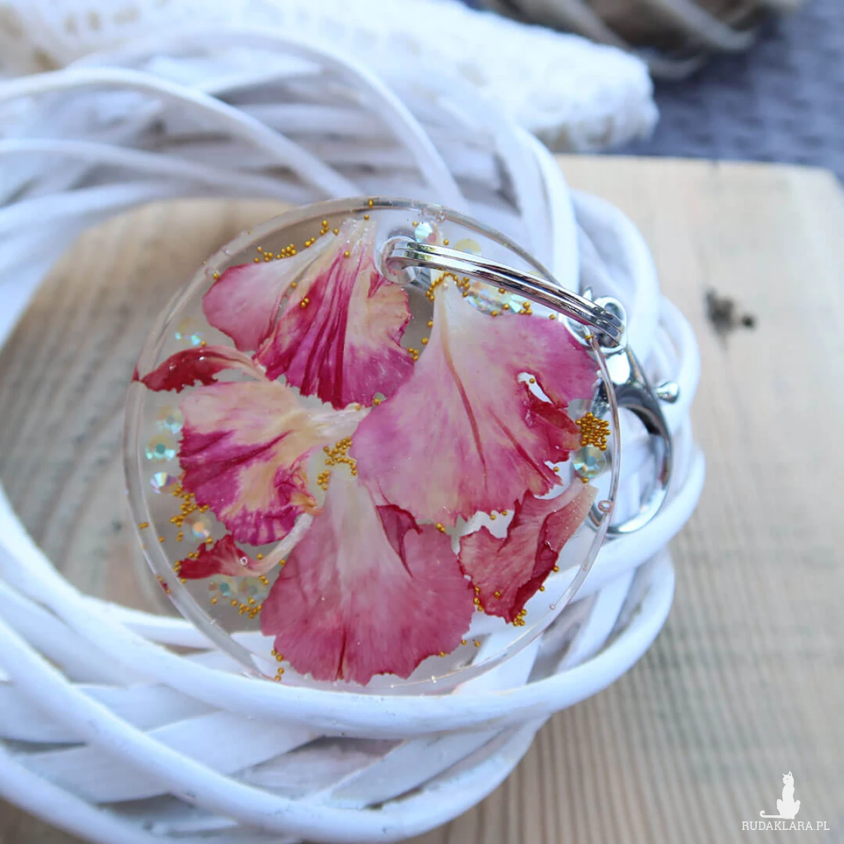 Wykonany z trwałych materiałów, zapewnia nie tylko estetykę, ale także funkcjonalność. To idealny sposób na wyrażenie Twojej miłości do natury i unikalnego stylu. Przywołaj wiosenny powiew świeżości z naszym brelokiem z żywicy epoksydowej z prawdziwymi płatkami kwiatów i ciesz się jego pięknem przez wiele lat.