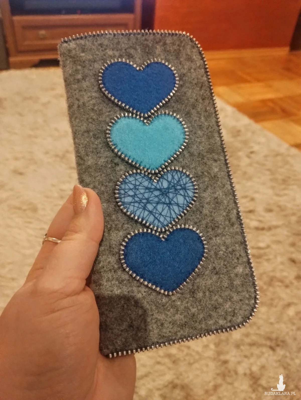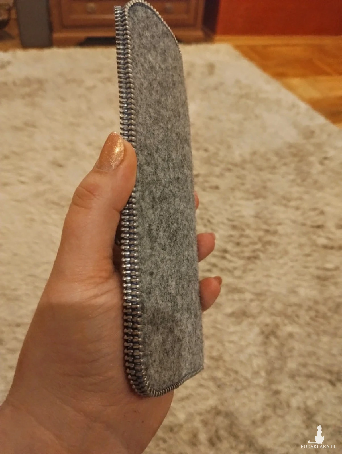 Etui pokrowiec na okulary mojego autorstwa wykonany z filcu i zamków z recyklingu
