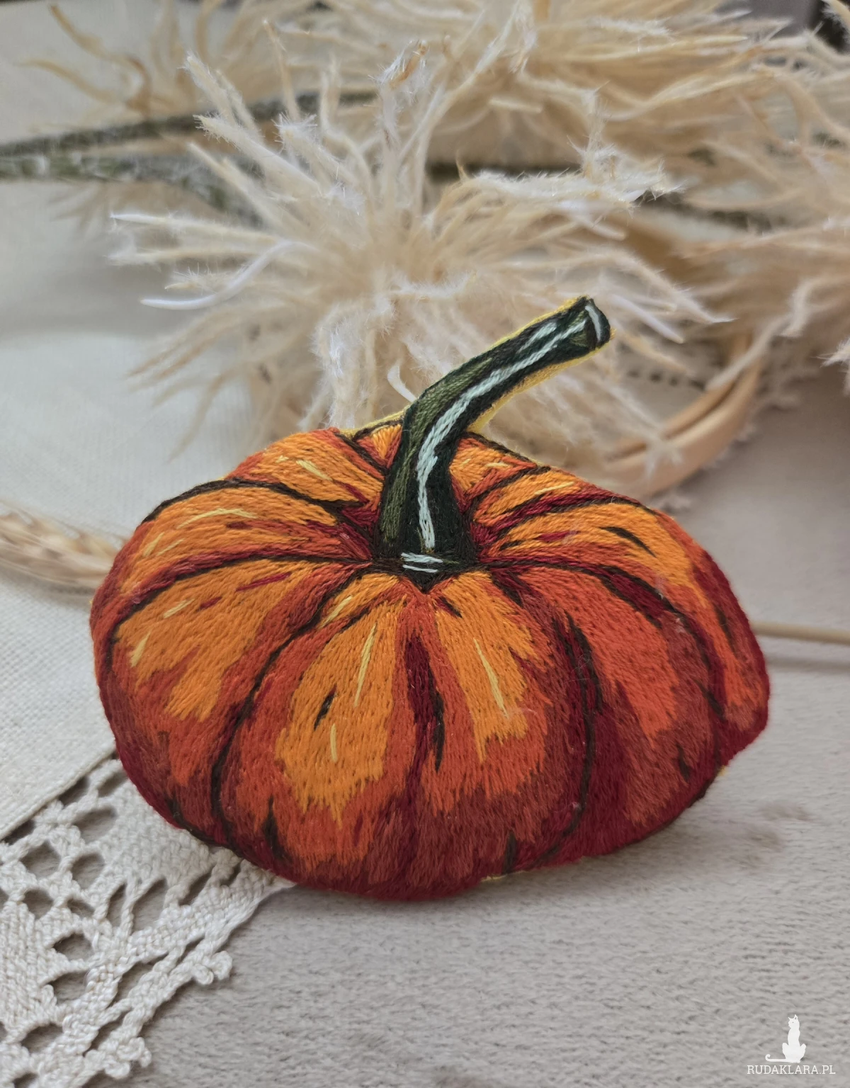 Broszka ręcznie wyszywana Dynia. Podszyta filcem w kolorze żółtym. Idealny dodatek do jesiennych stylizacji.