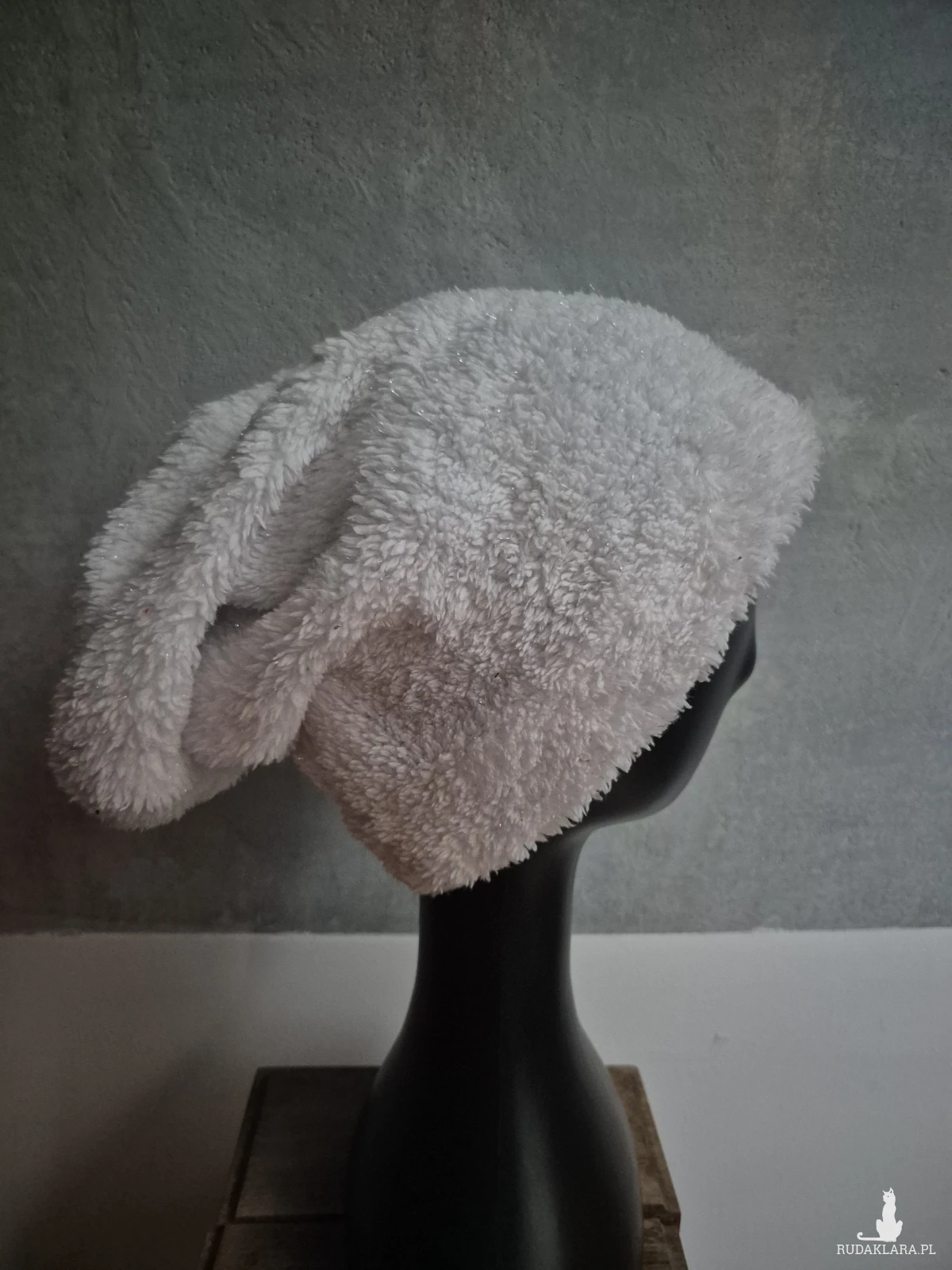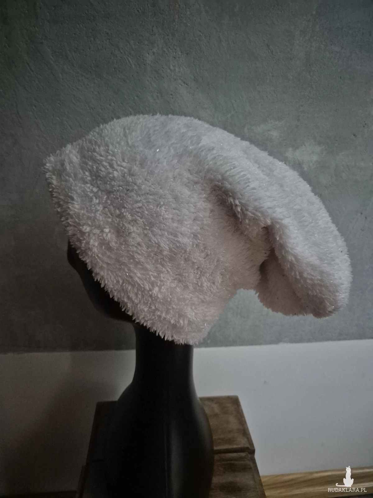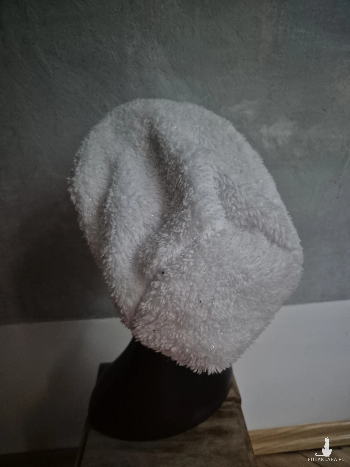 Czapka Biały miś futerko Smerfetka na podszewce rozmiar uniwersalny cudna rękodzieło polecam boks walis