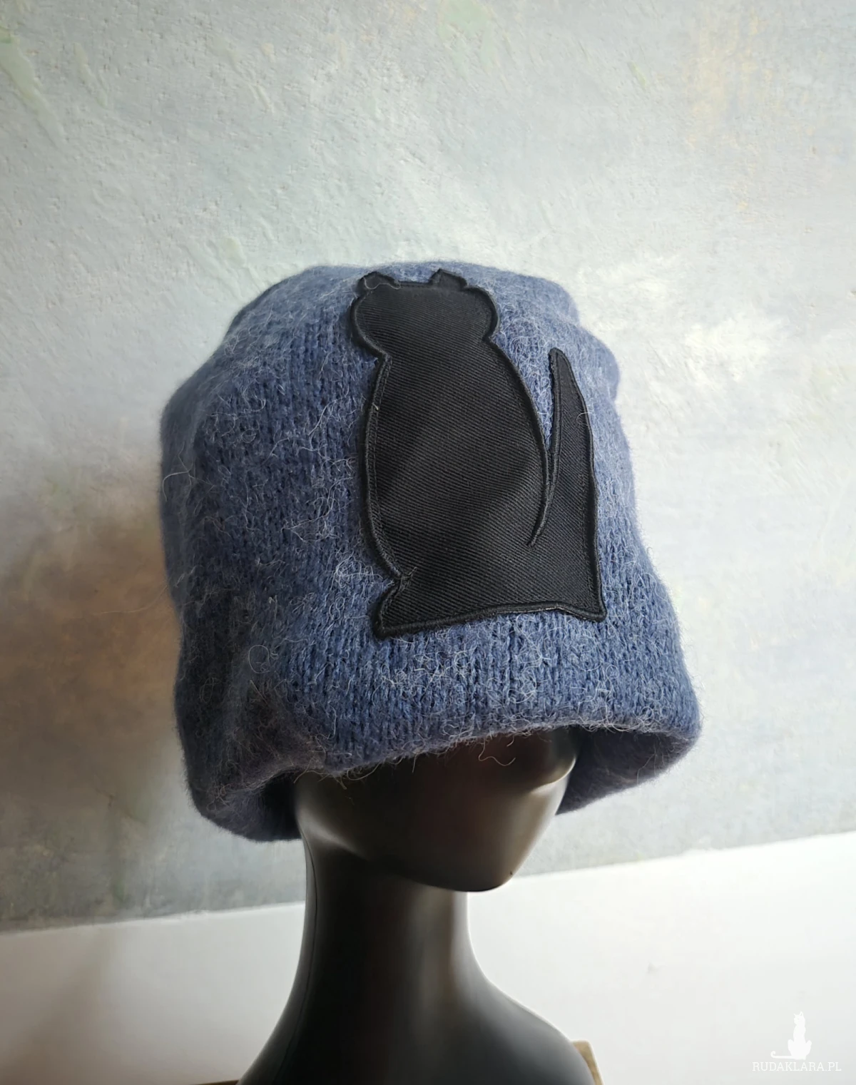 Czapka uniwersalna na podszewce cudna z kotem rękodzieło polecam boks walis