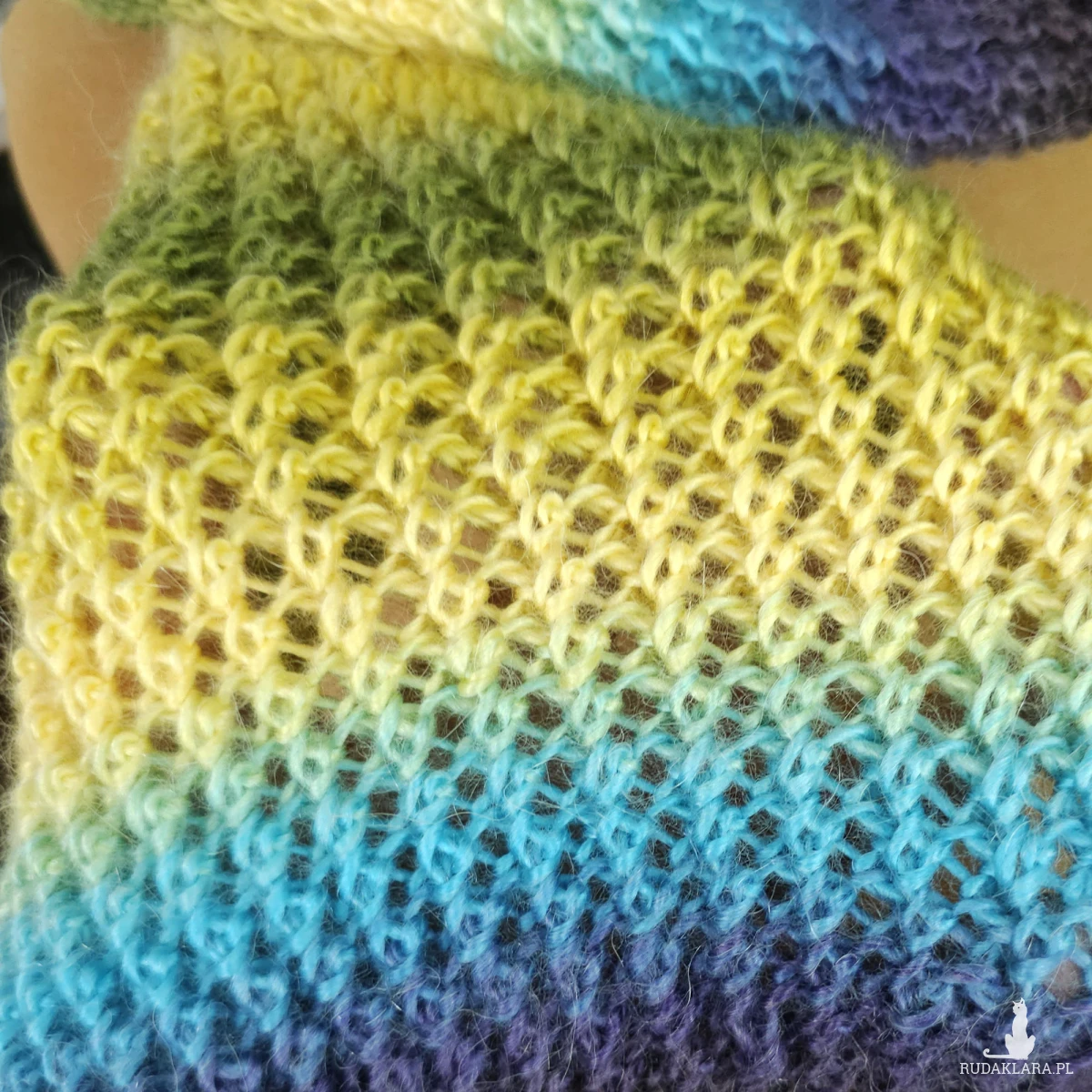 Szalik został wykonany na drutach z włóczki o składzie 75% akryl i 25% alpaka, co gwarantuje nie tylko miękkość i przyjemność w dotyku, ale także doskonałe właściwości termiczne.