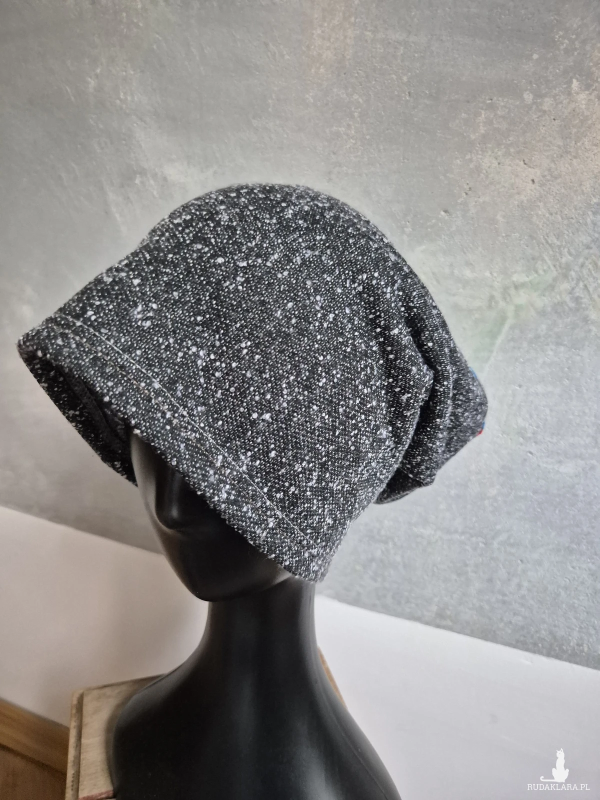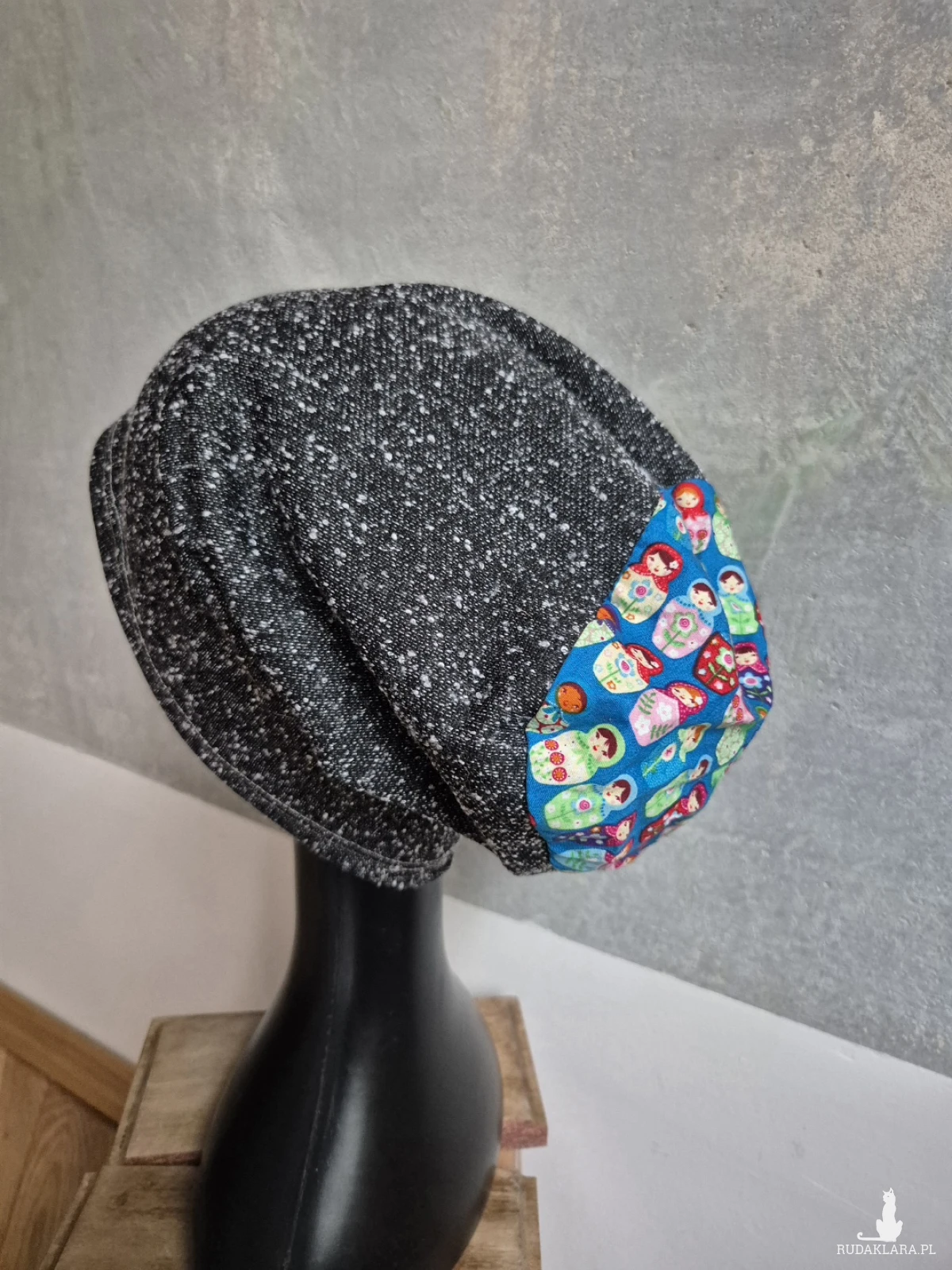 Czapka szara Smerfetka codzienna materiał rozciągliwy miękki czapka świetna na codzienne noszenie bez podszewki szara z matrioszkami polecam box e1