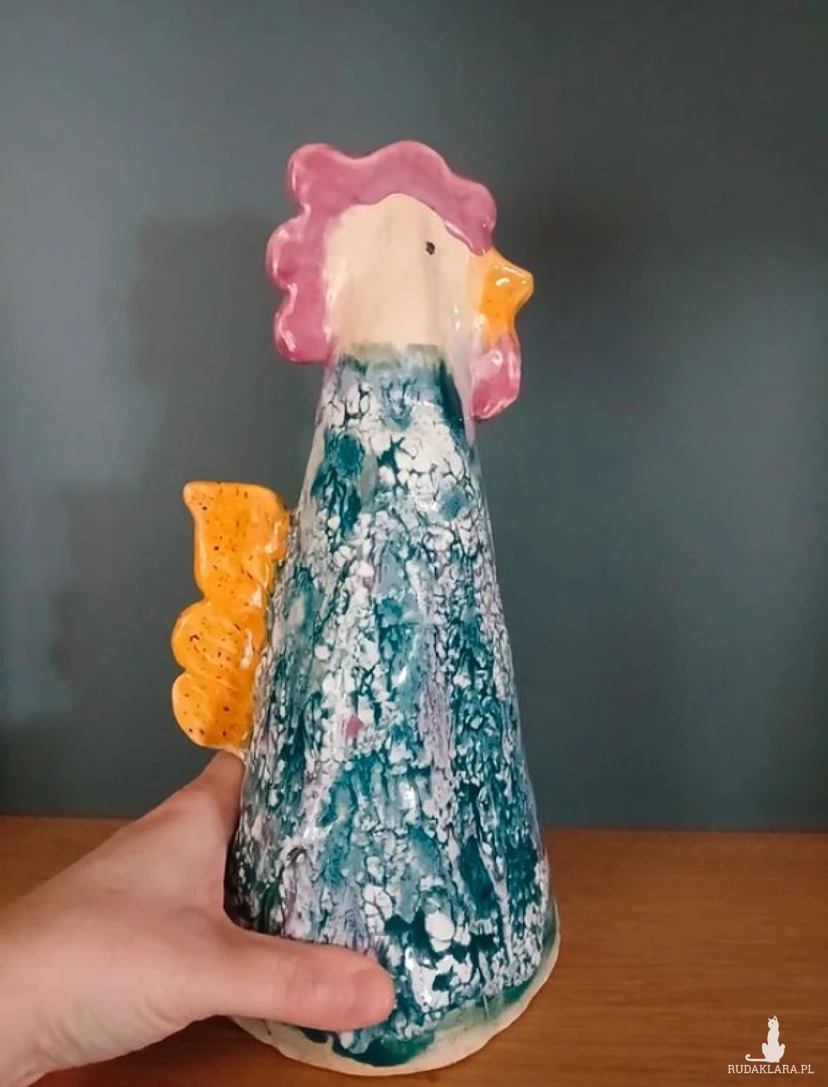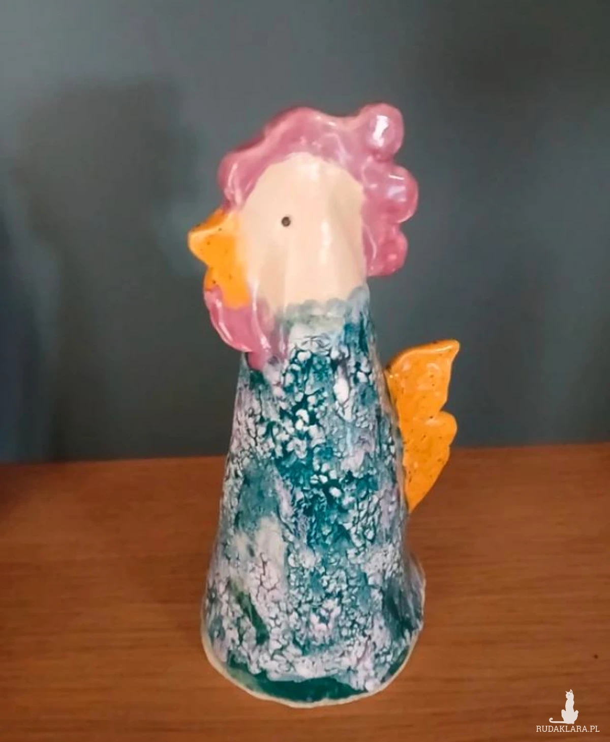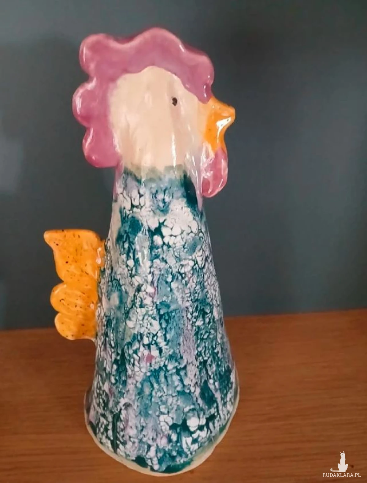 Kogut czy kura? Dekoracyjna rzeźba gliniany kogucik lub kurka doda wiejskiego folkowego klimatu każdemu wnętrzu. Może też posłużyć jako rzeźba ogrodowa w rustykalnym klimacie. Jedyna i niepowtarzalna.