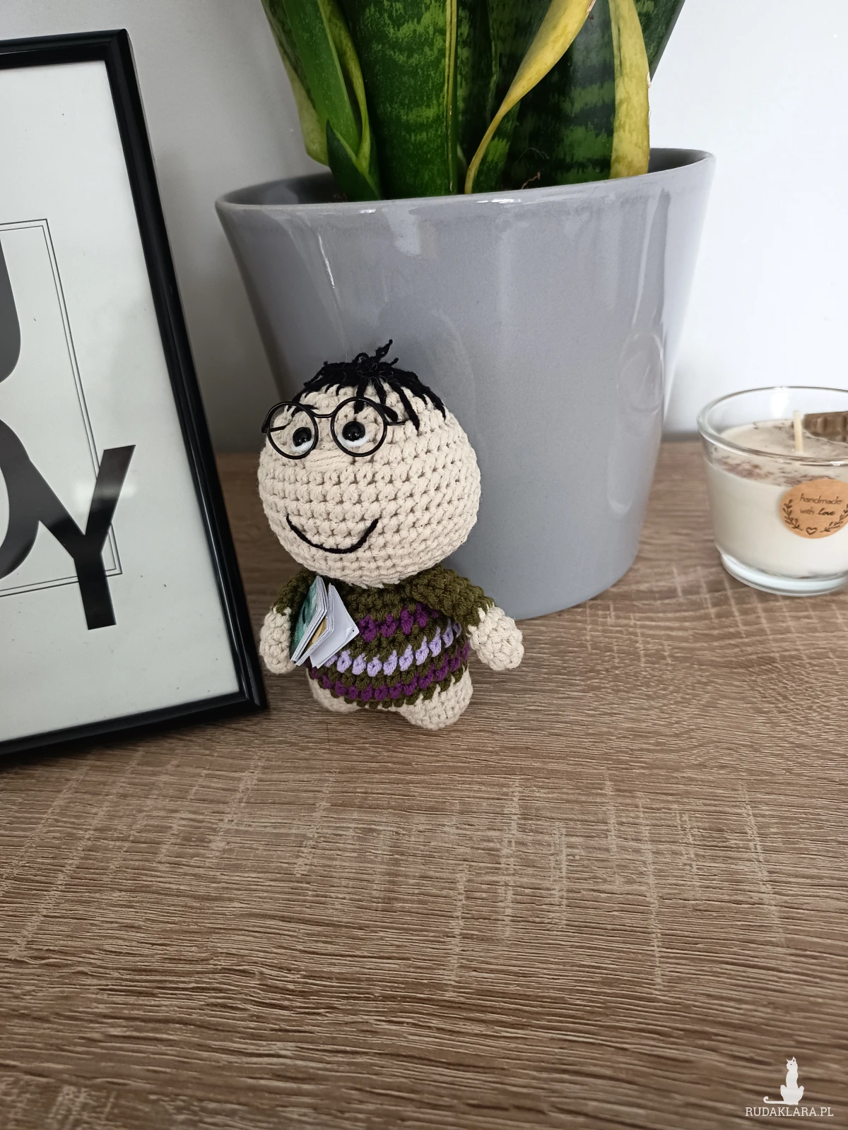 Wykonany na szydełku, z wysokiej jakości włóczki z przewagą bawełny, wypełniony kulką silikonową. Możliwość prania ręcznego.