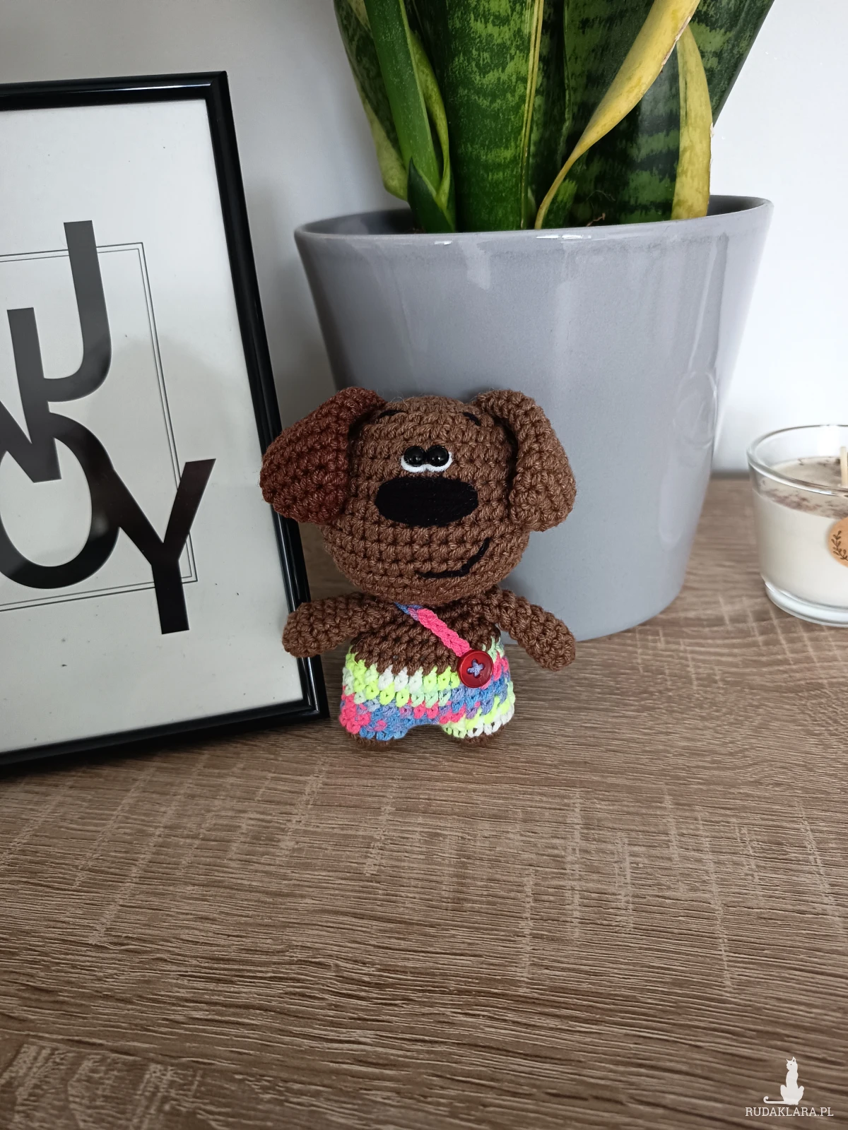 Brelok szydełkowy brązowy piesek z czarnym noskiem