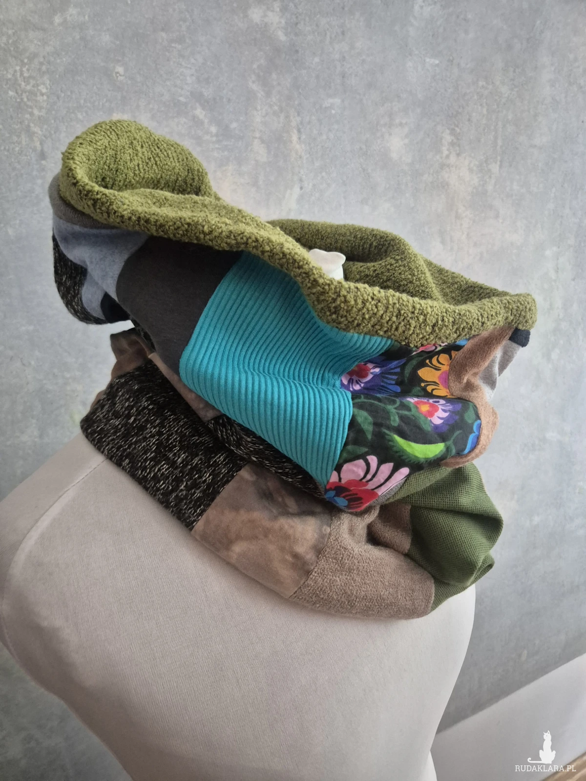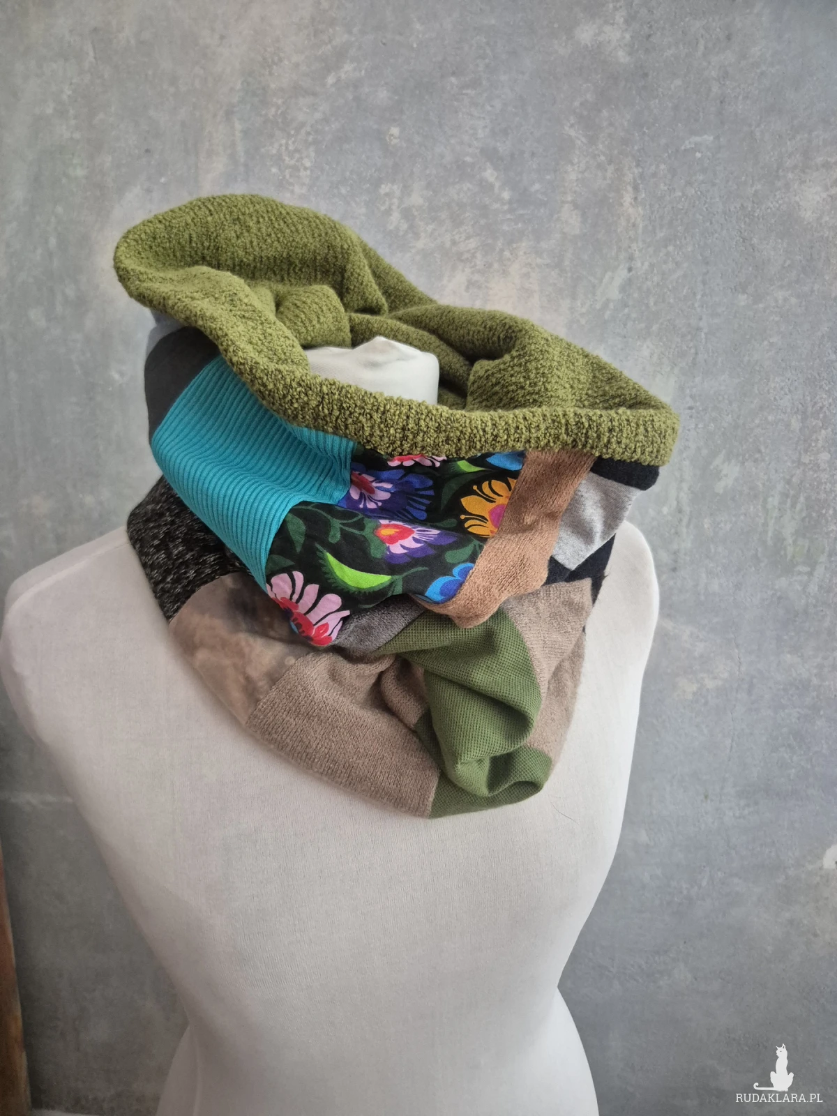 komin miękki patchworkowy kolorowy uniwersalny damski,cieply na podszewce,