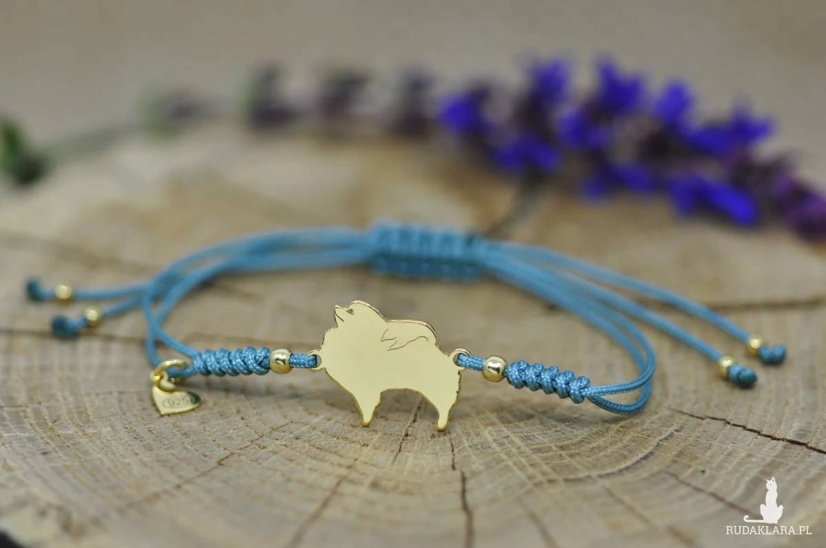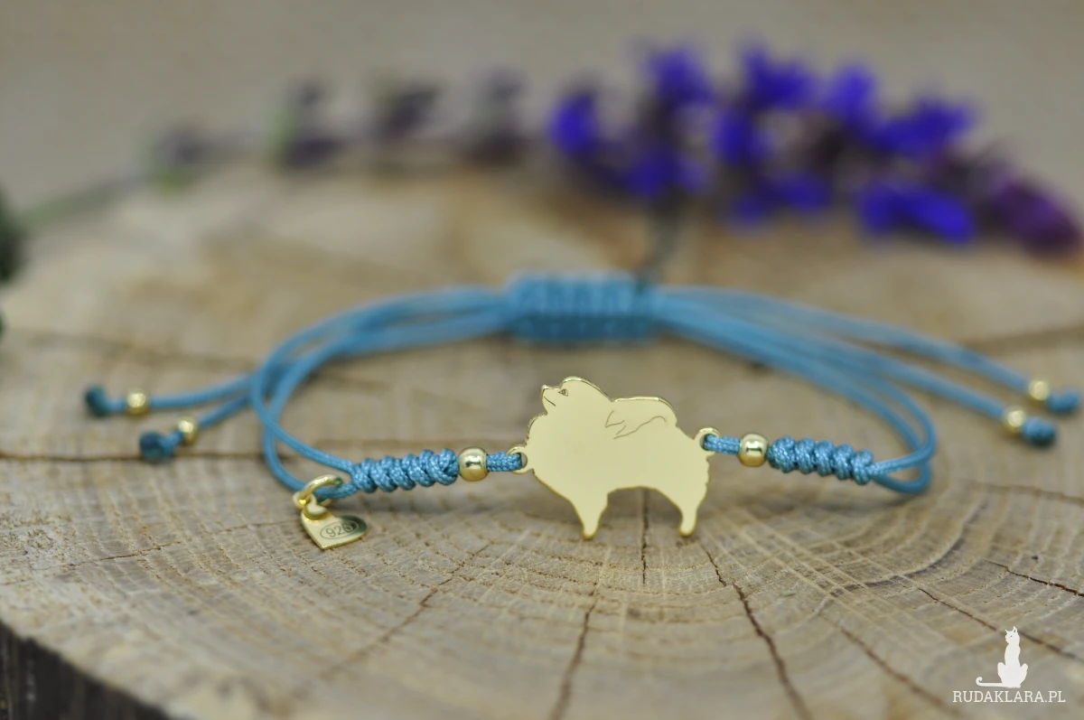Szpic wykonany ze srebrnej blachy próby 925, wymiary pieska: 19 x 15,2 mm, grubość 0,8 mm oraz srebrne serduszka i kulki.