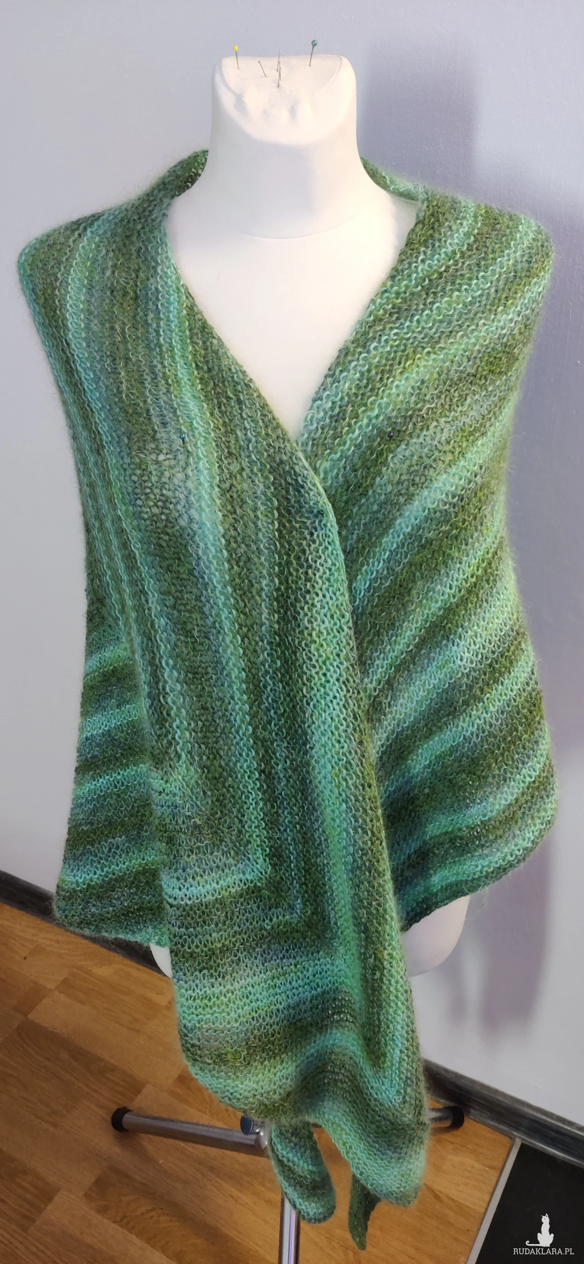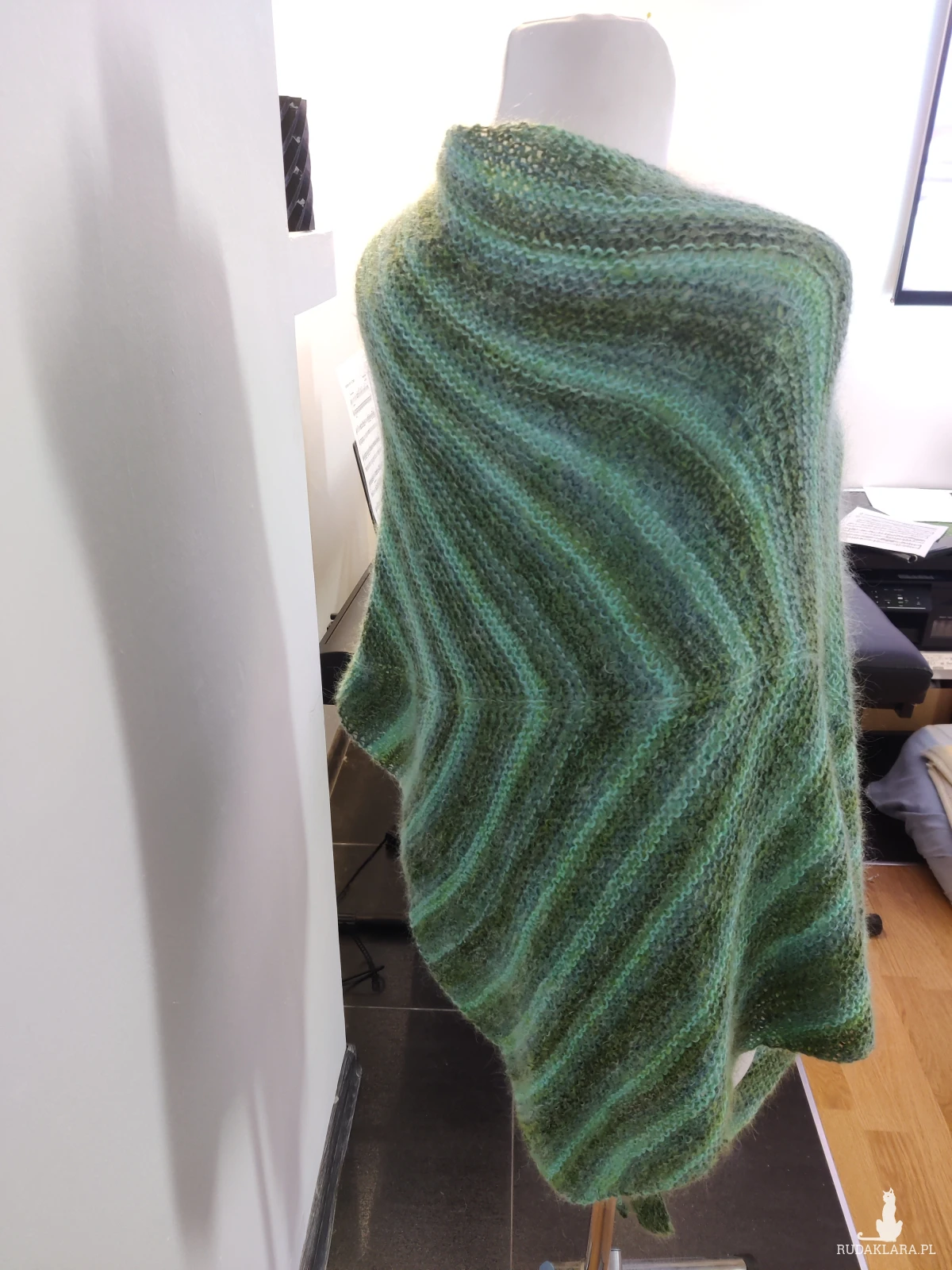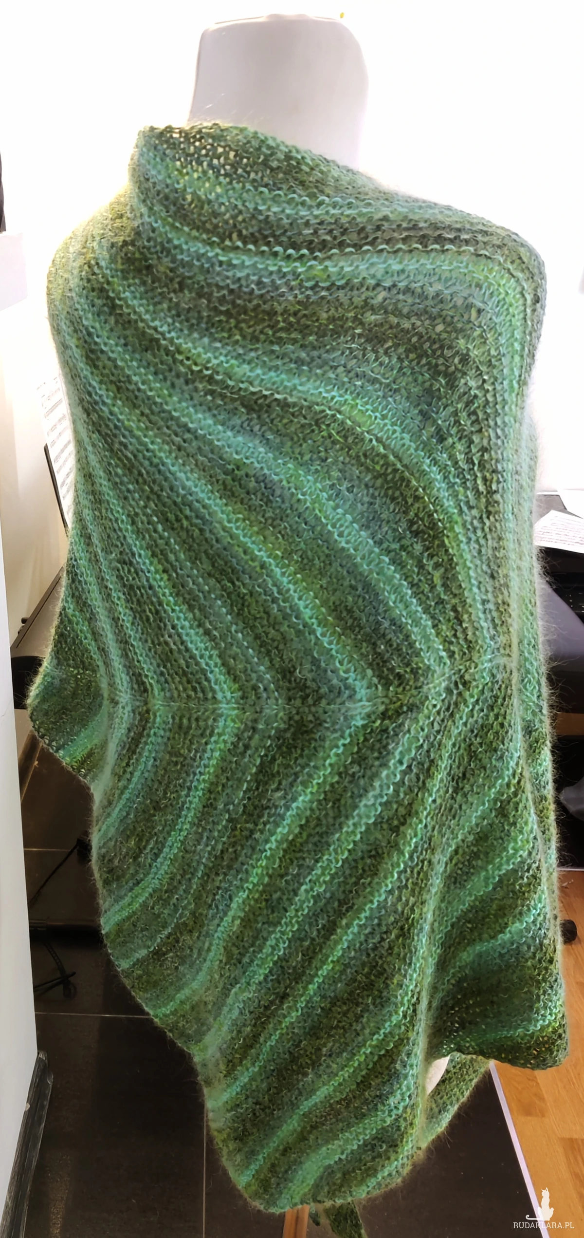 Bardzo duża chusta asymetrycznie zrobiona strzałka otuli, ogrzeje w zimowe dni.