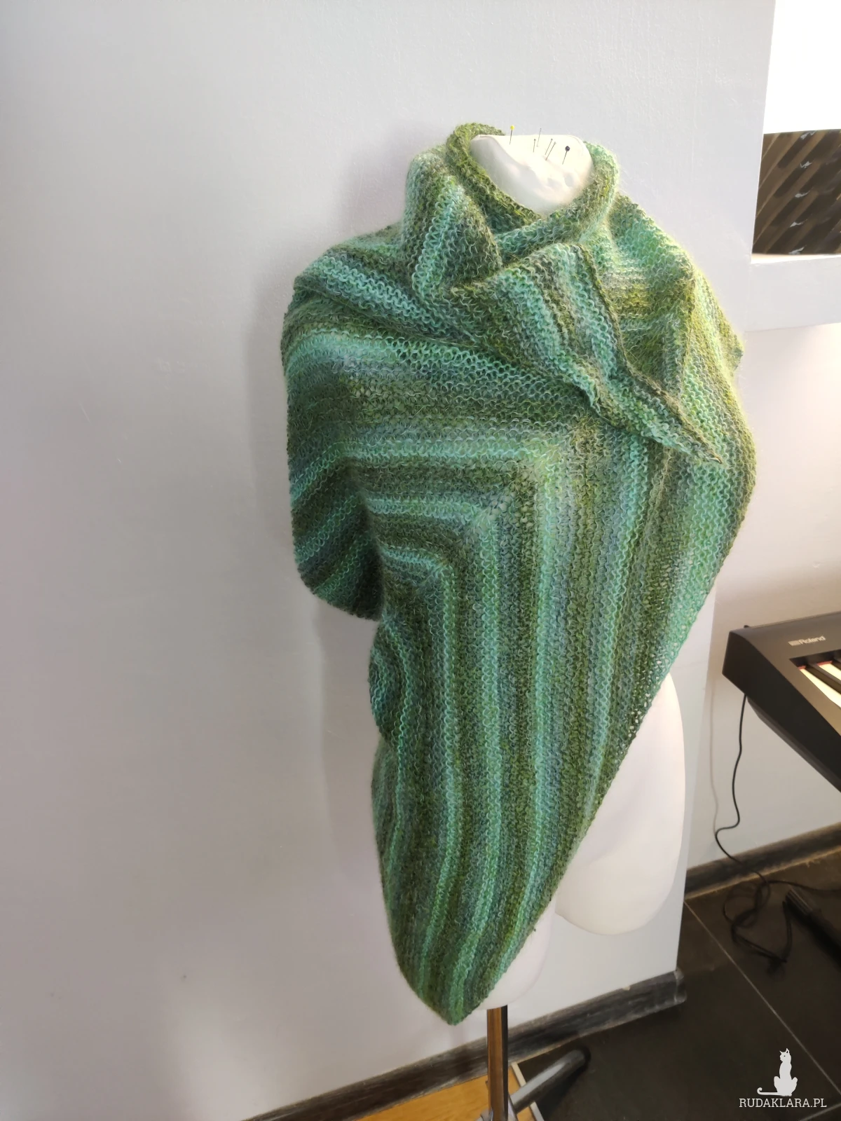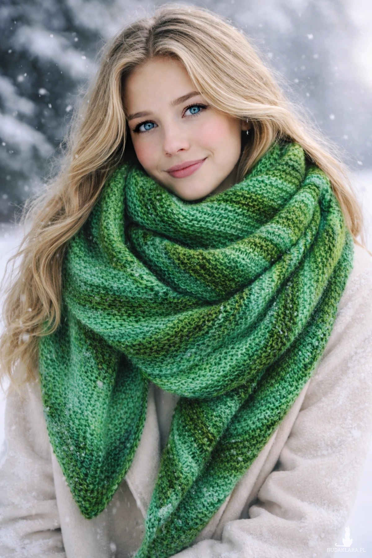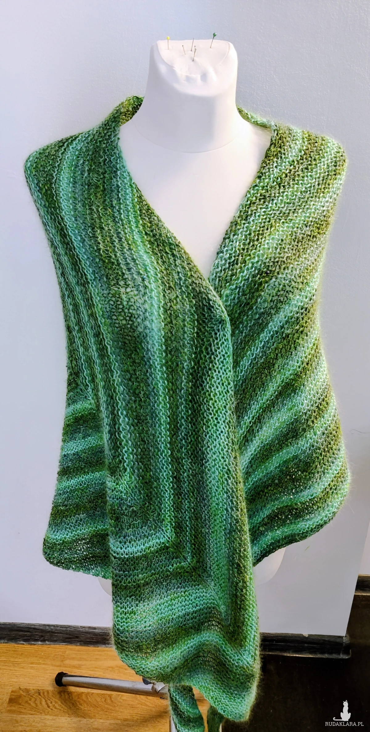 Bardzo duża chusta asymetrycznie zrobiona strzałka otuli, ogrzeje w zimowe dni.