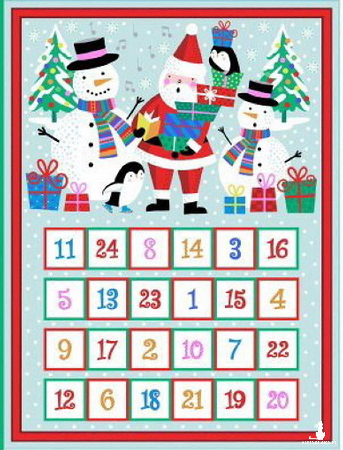Kalendarz adwentowy wykonany z tkaniny firmy Makower. Piękne , żywe kolory.