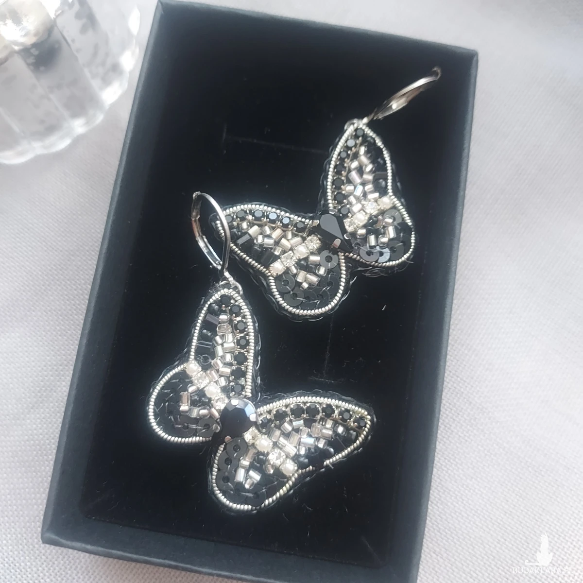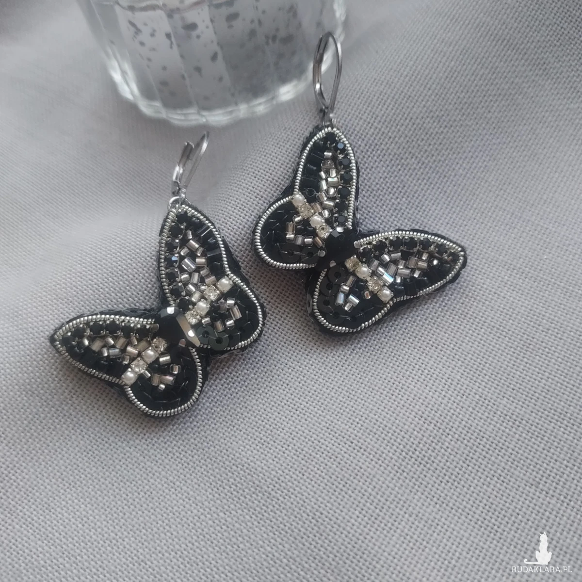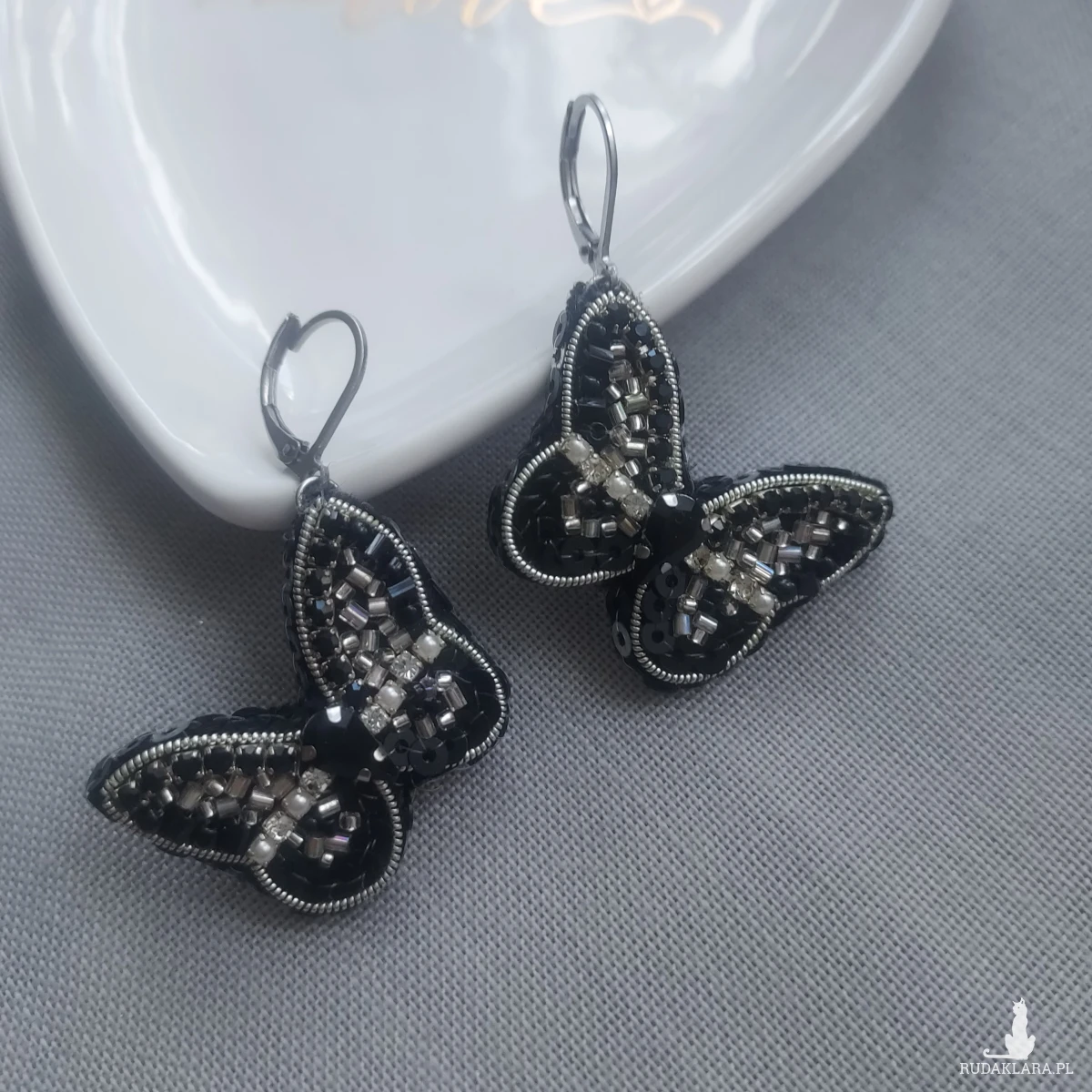 Kolczyki Motylki niezwykłe połączenie czerni oraz srebra.