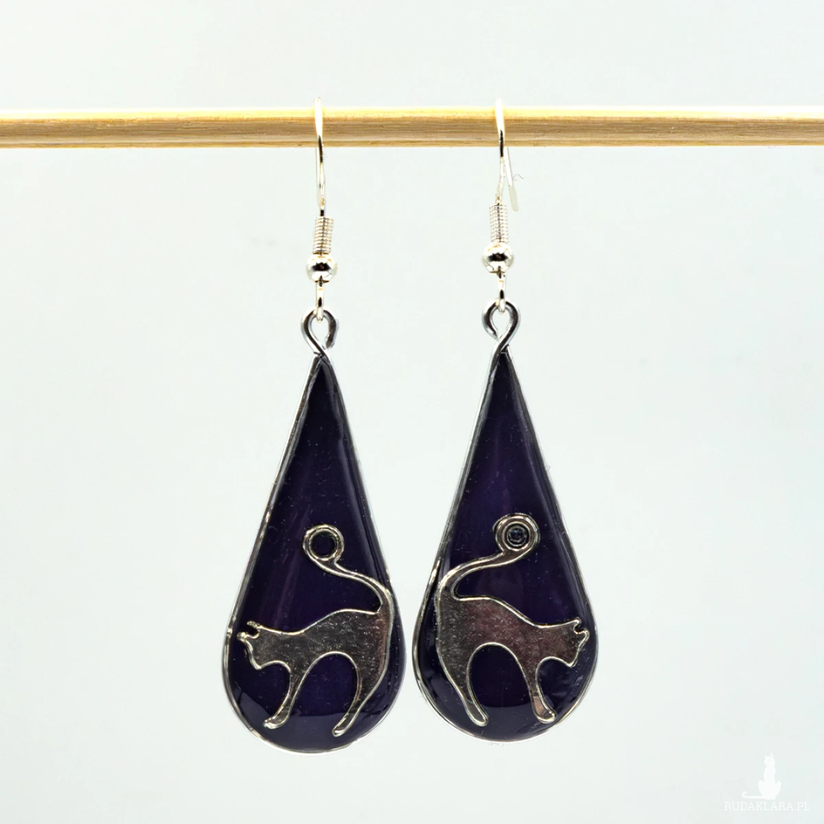 wykonane przeze mnie unikalne kolczyki w klasycznym gotyckim stylu z kotem, dla wszystkich fanów "czarnej sceny". Należę do niej od blisko 30 lat i dlatego tworzę biżuterię, która może wydawać się mniej "gotycka" niż inne wzory, tzn. mniej wizualnie wybujała, ale skierowana jest przede wszystkim do tych, którzy cenią sobie subtelność bez utraty podstawowych gotyckich cech.