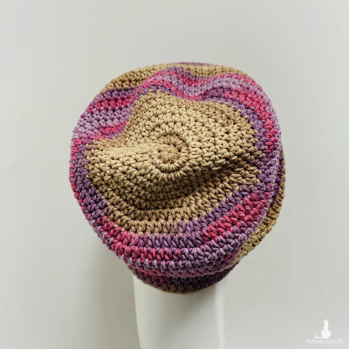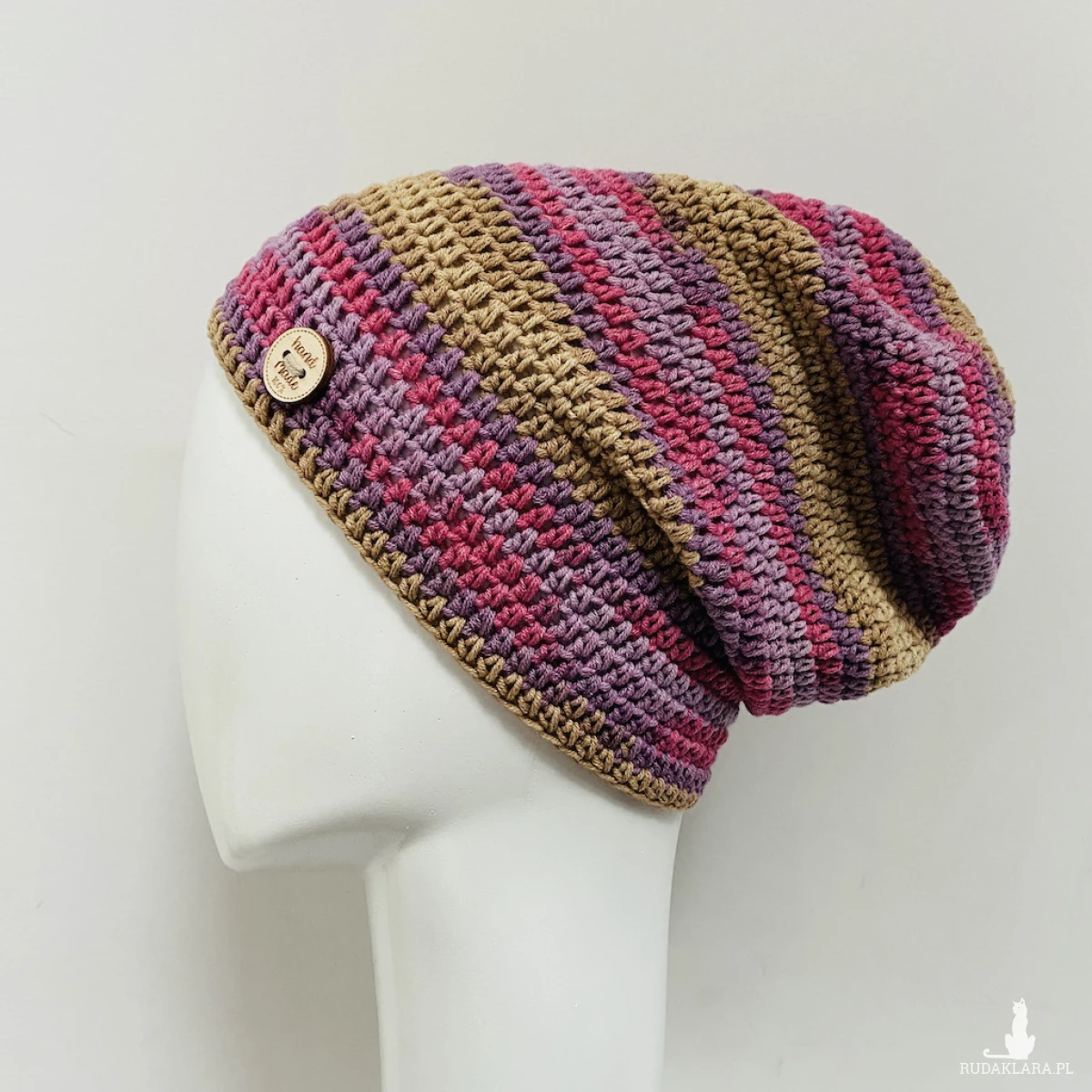 Czapkę wykonałam z wysokiej jakości włóczki bawełniano-akrylowej, która zapewnia wygodę noszenia przez cały dzień.