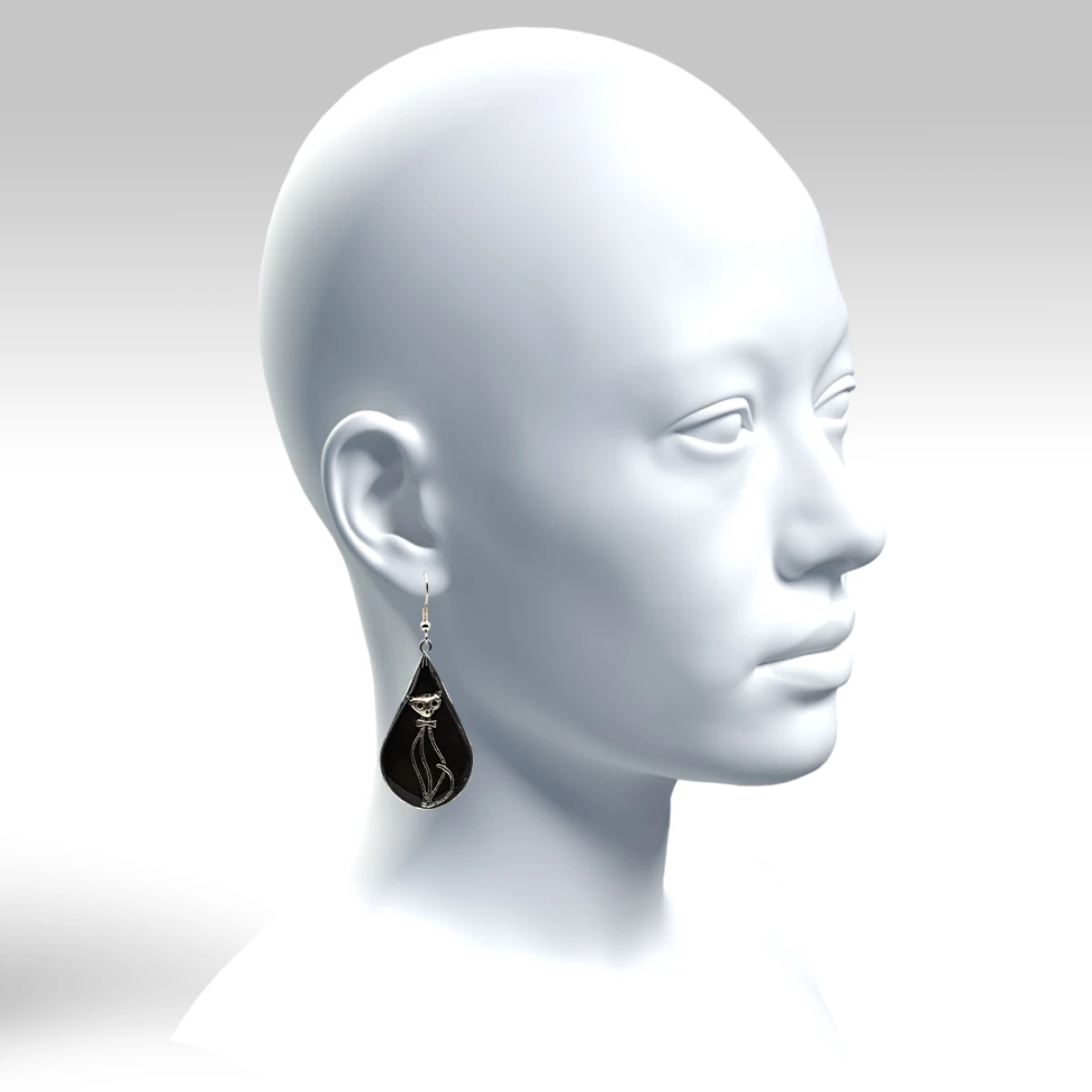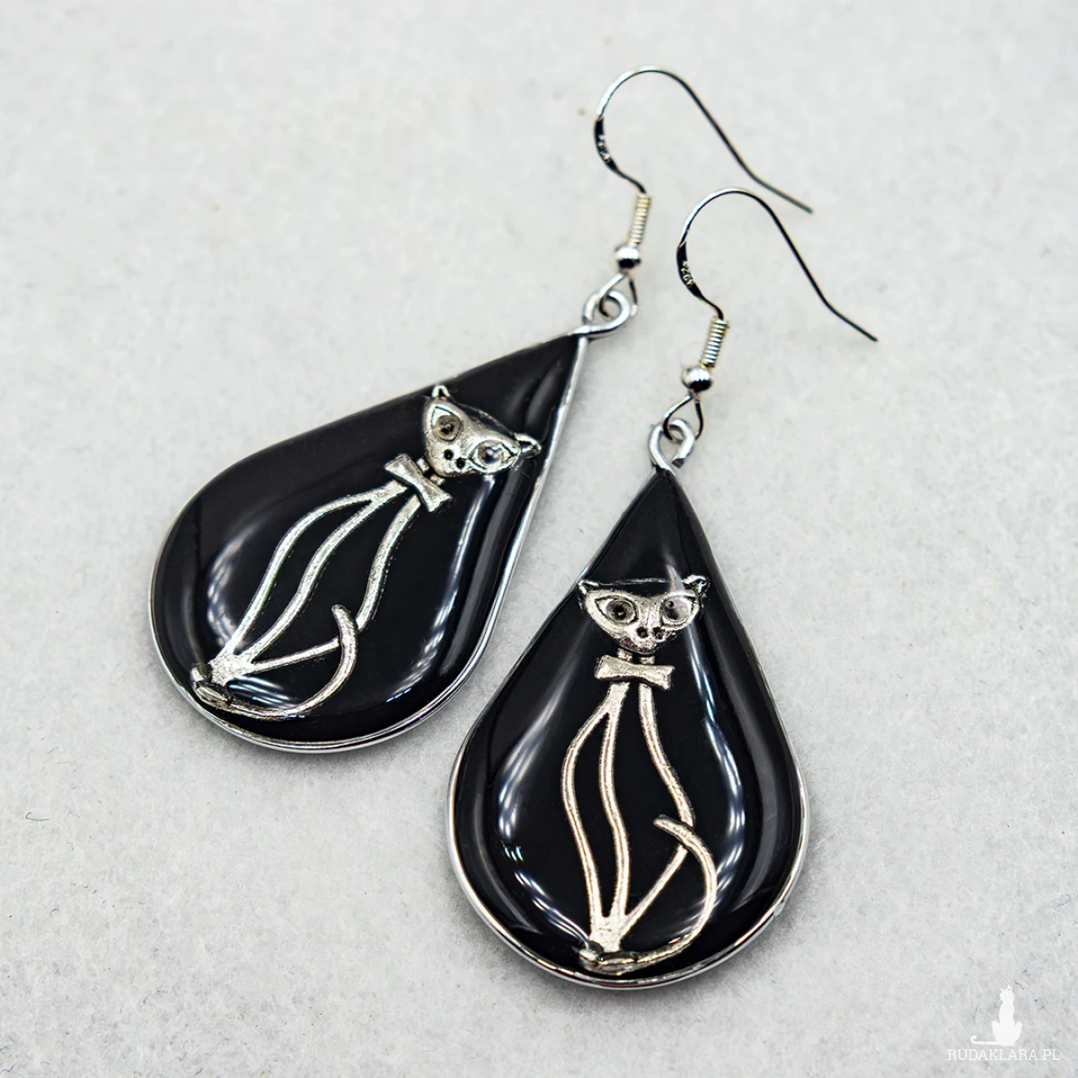Zaprojektowane i ręcznie wykonane przeze mnie unikalne kolczyki w klasycznym gotyckim stylu z kotem, dla wszystkich fanów "czarnej sceny". Należę do niej od blisko 30 lat i dlatego tworzę biżuterię, która może wydawać się mniej "gotycka" niż inne wzory, tzn. mniej wizualnie wybujała, ale skierowana jest przede wszystkim do tych, którzy cenią sobie subtelność bez utraty podstawowych gotyckich cech.
