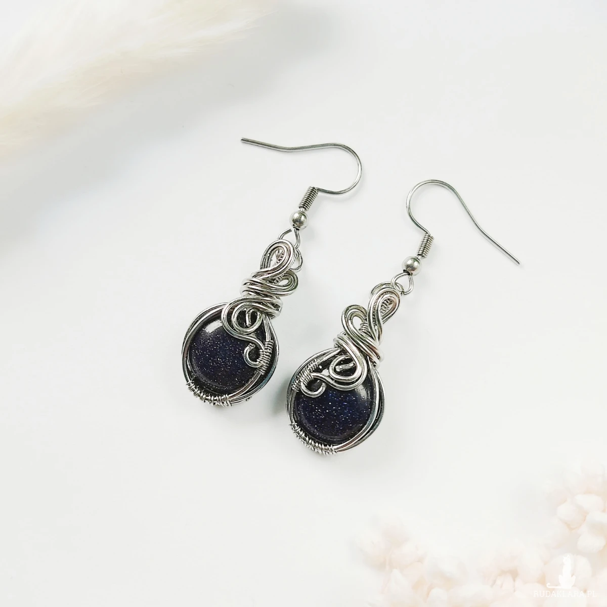 Kolczyki Noc Kairu ręcznie robione. Wykonane techniką wirewrapping z drutów ze stali chirurgicznej.