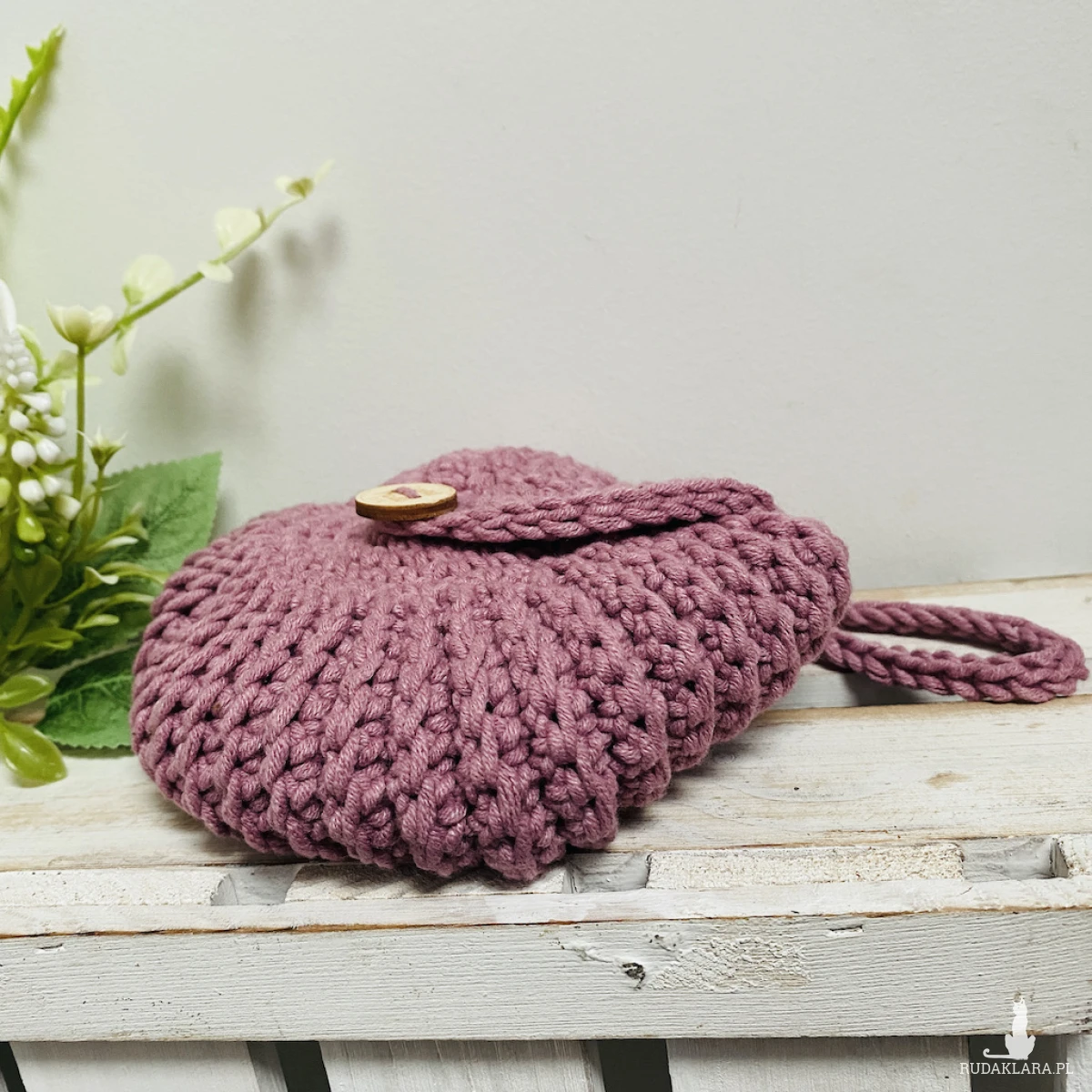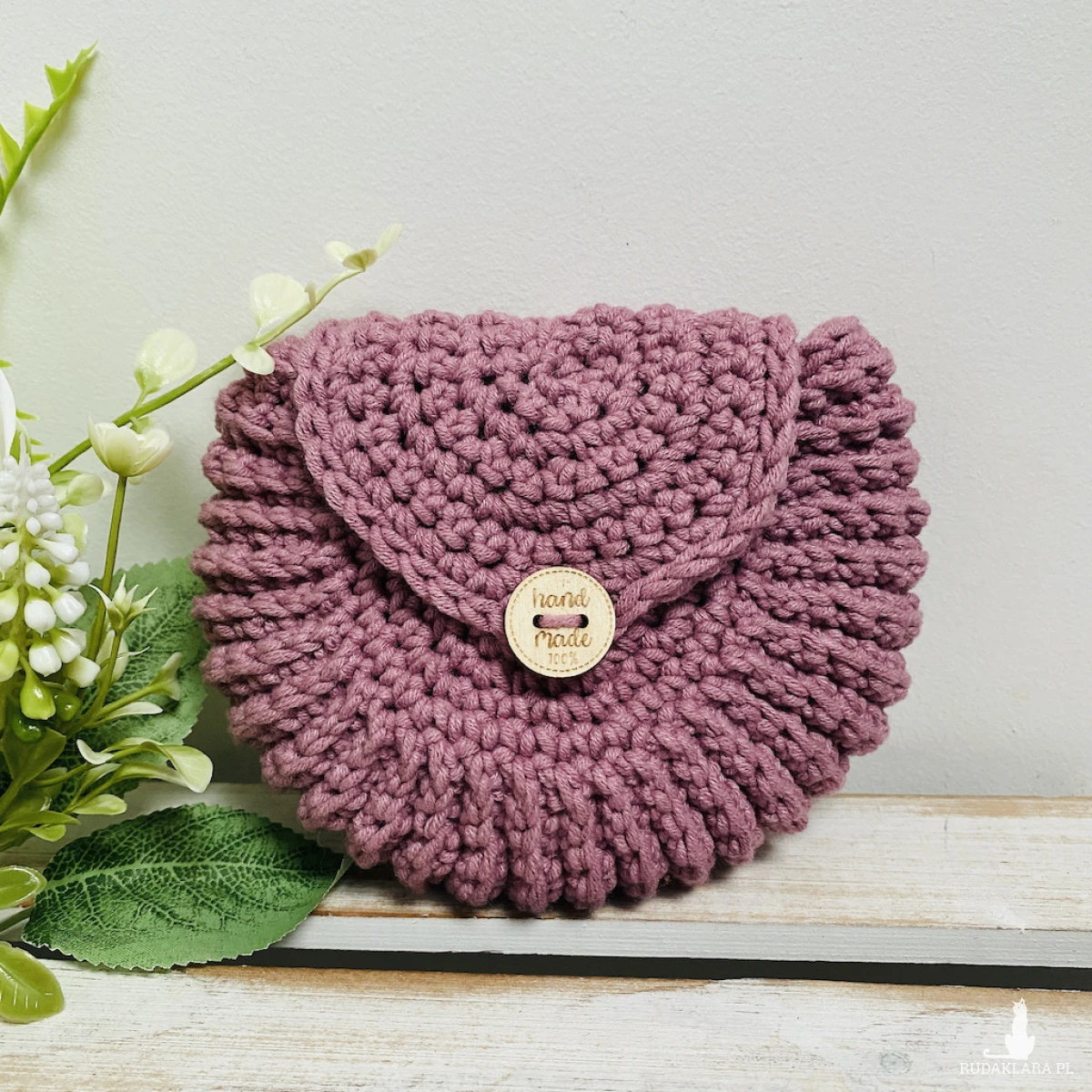 Torebkę wykonałam na szydełku z przyjemnej w dotyku mieszanki włóczki bawełniano–akrylowej.