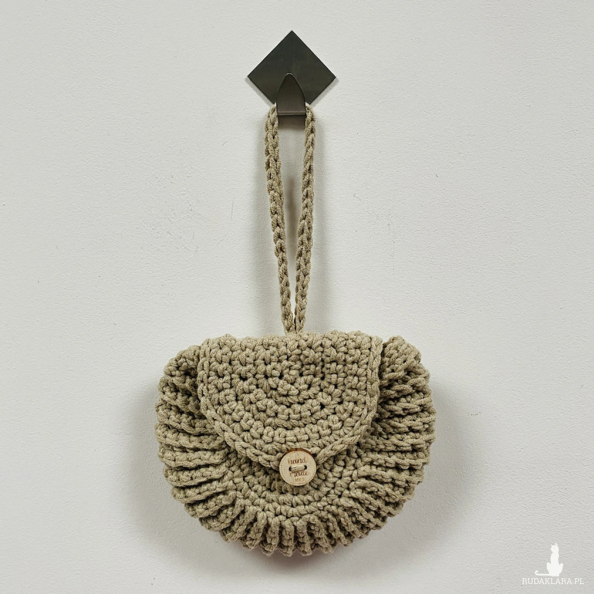 Torebkę wykonałam na szydełku z przyjemnej w dotyku mieszanki włóczki bawełniano–akrylowej.