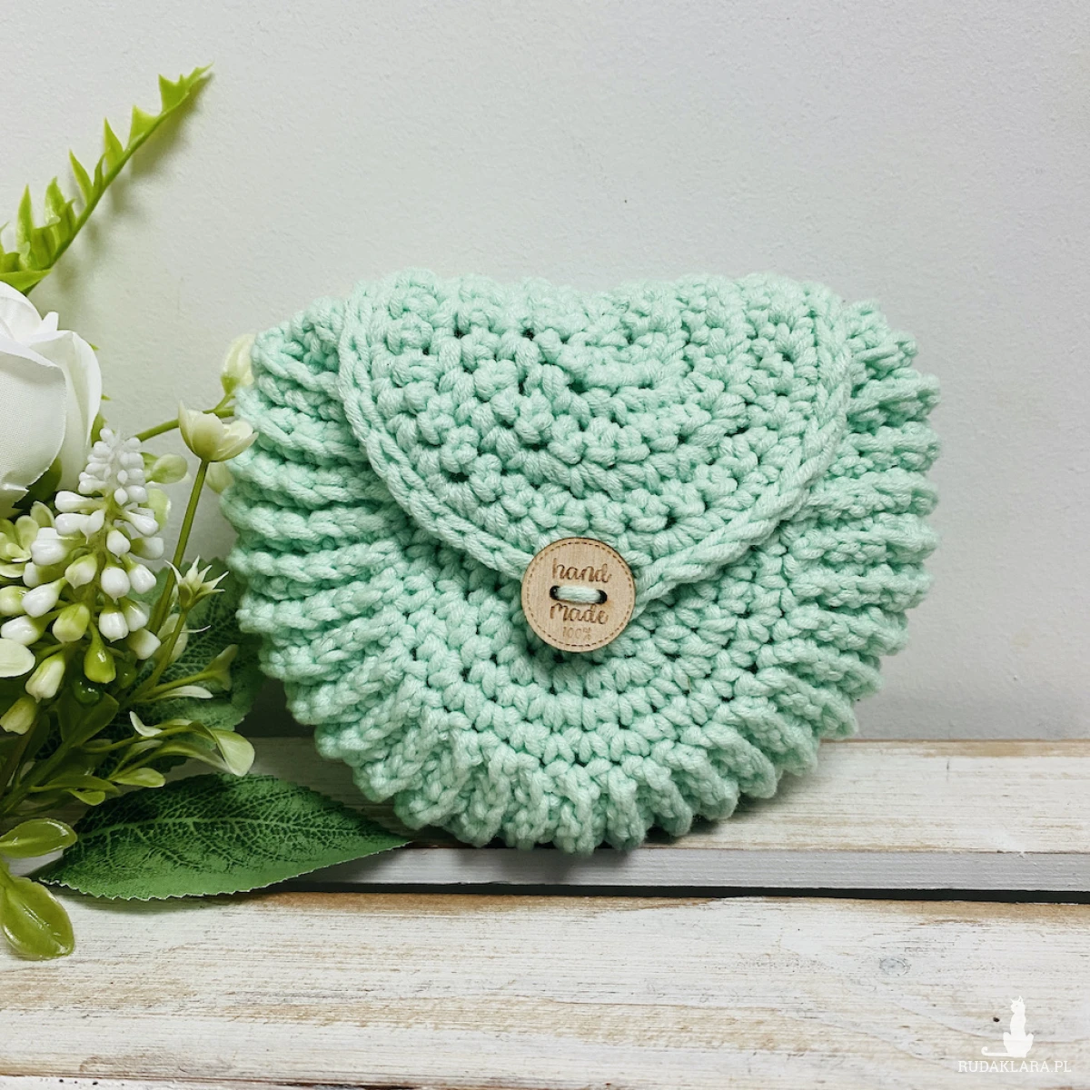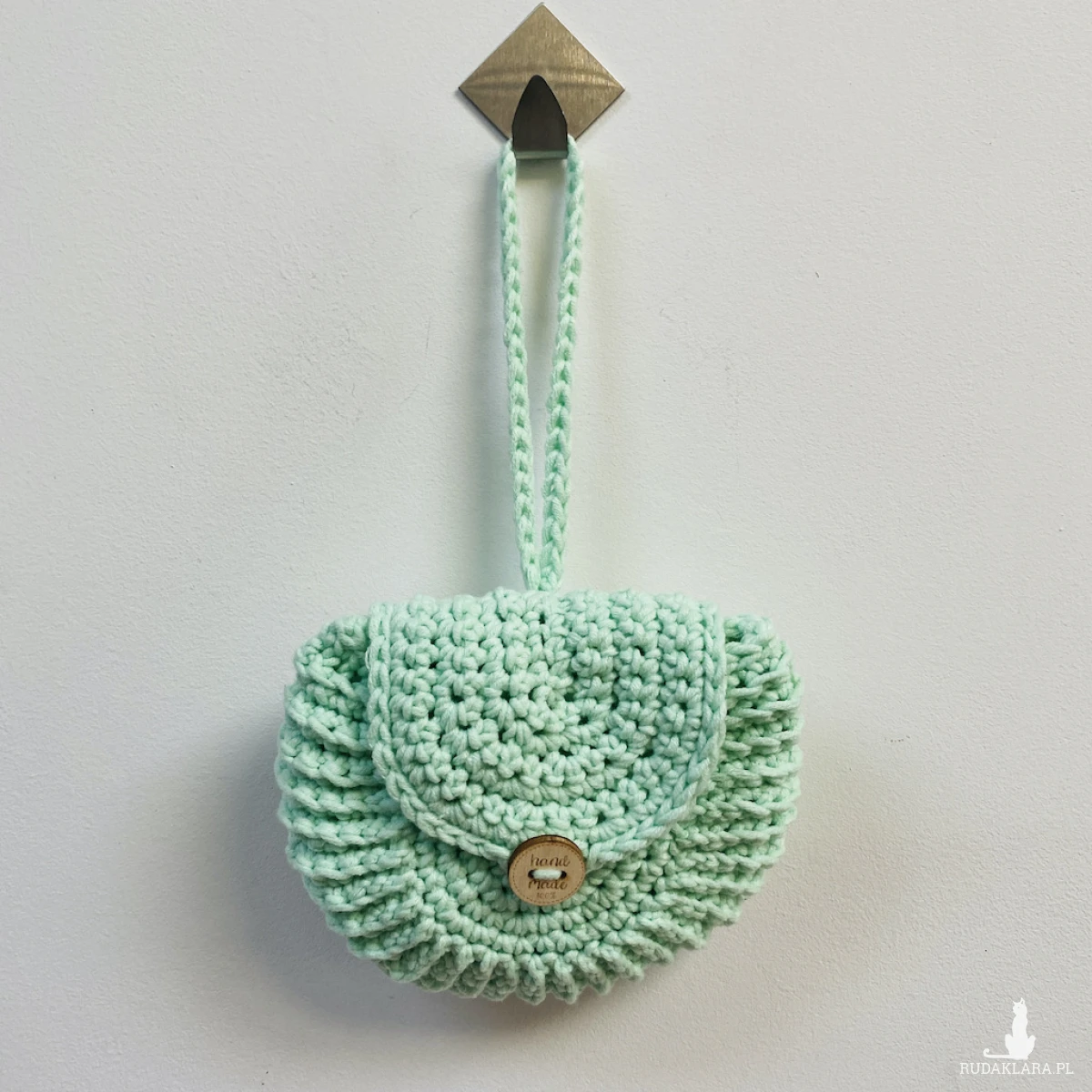 Torebkę wykonałam na szydełku z przyjemnej w dotyku mieszanki włóczki bawełniano–akrylowej.