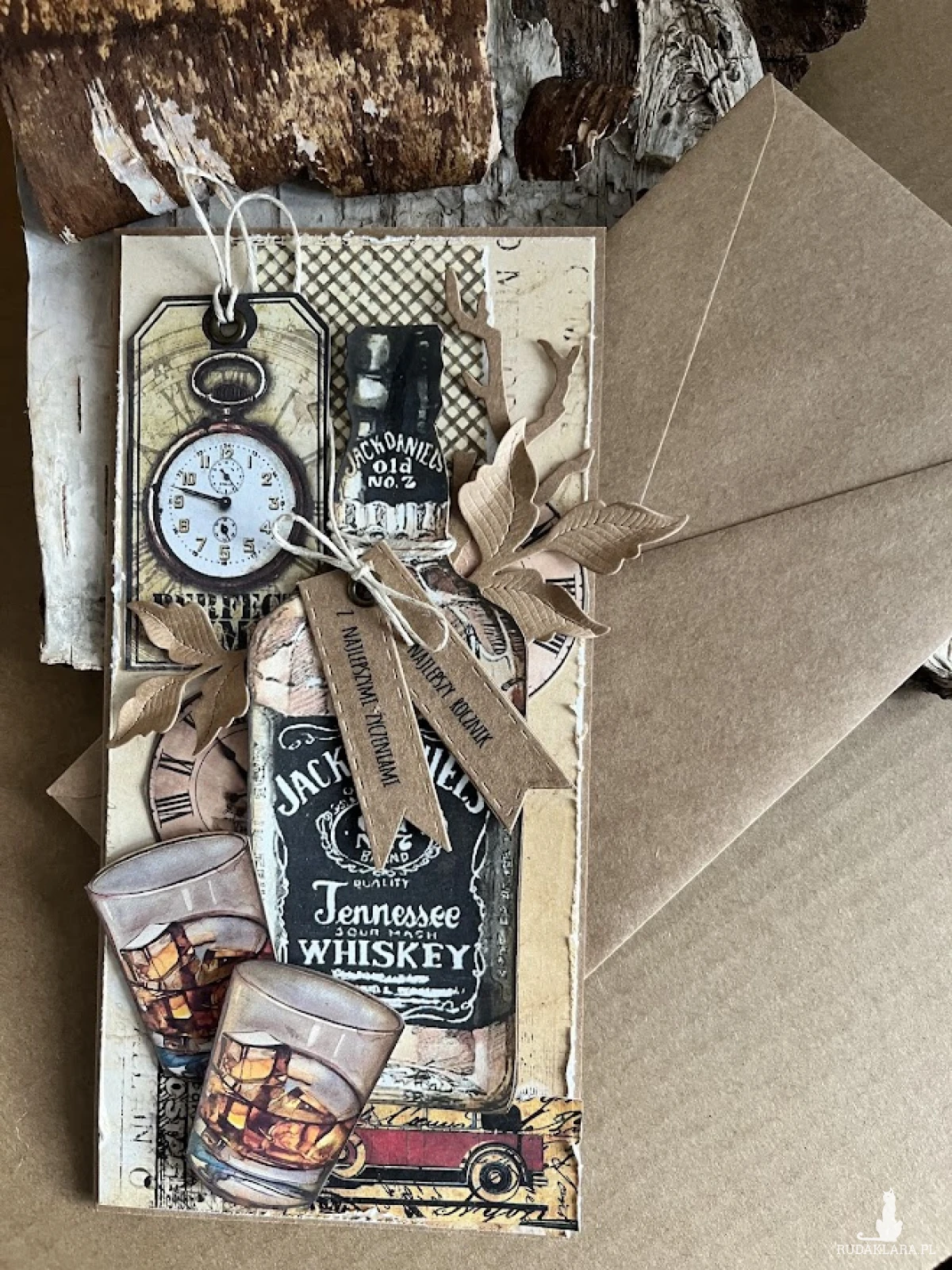 KARTKA RĘCZNIE WYKONANA TECHNIKĄ SCRAPBOOKINGU.